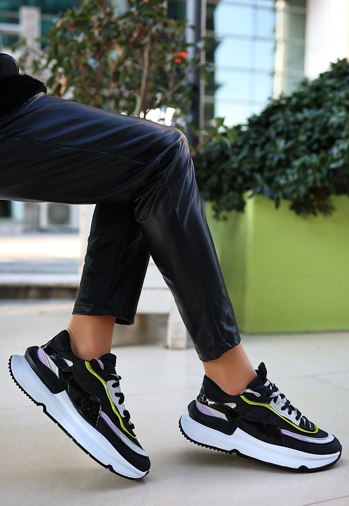 Aleh Siyah Cilt Lila Detaylı Spor Ayakkabı