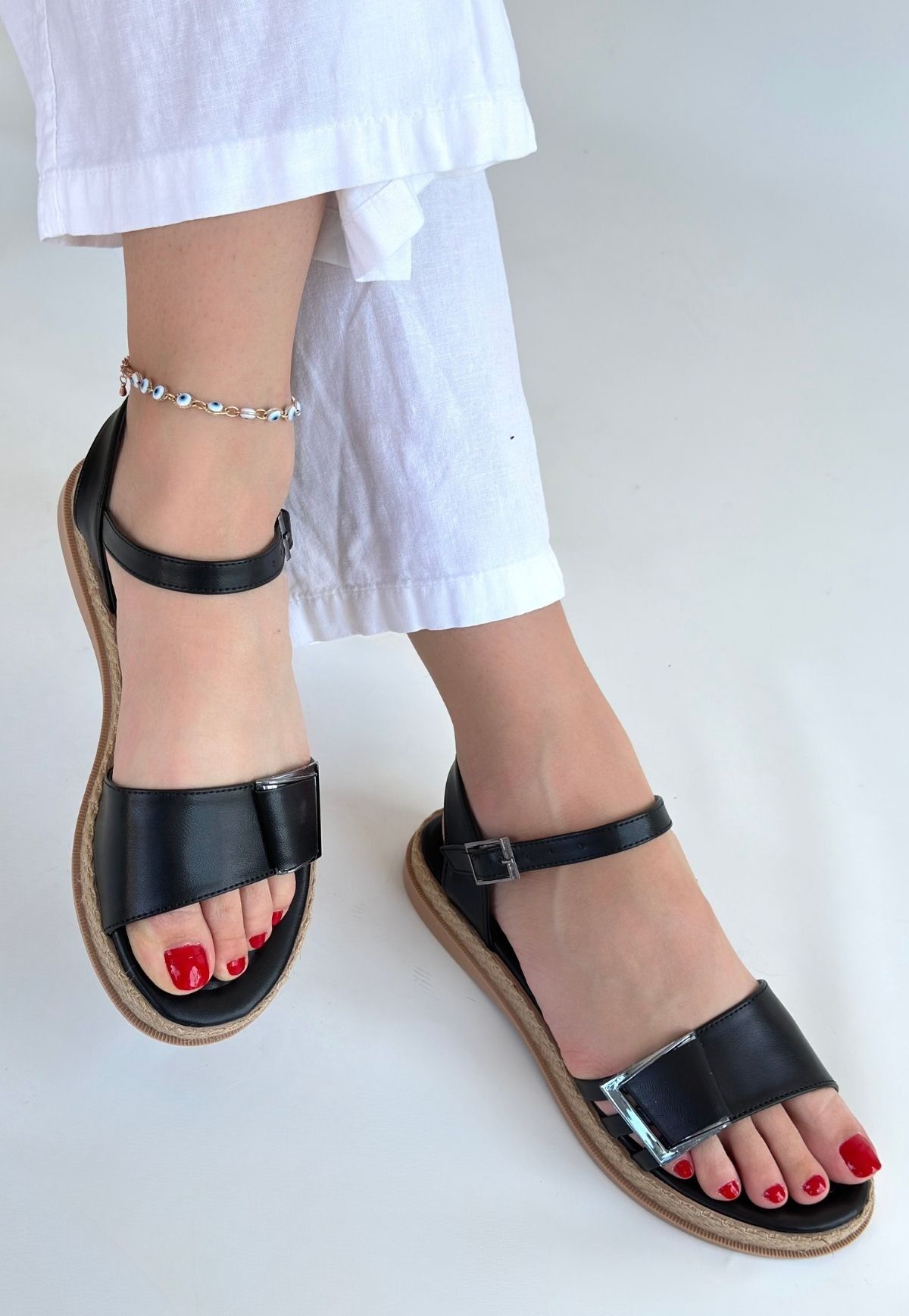 Andana Siyah Cilt Sandalet