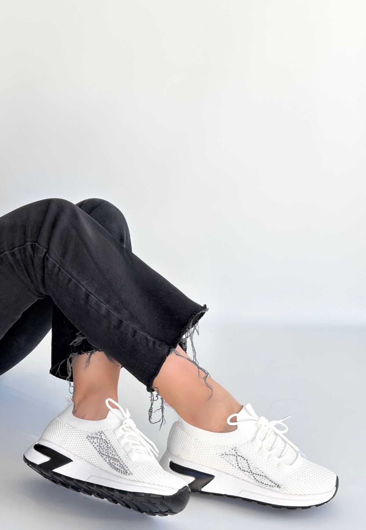 Belan Beyaz Triko Bağcıklı Spor Ayakkabı