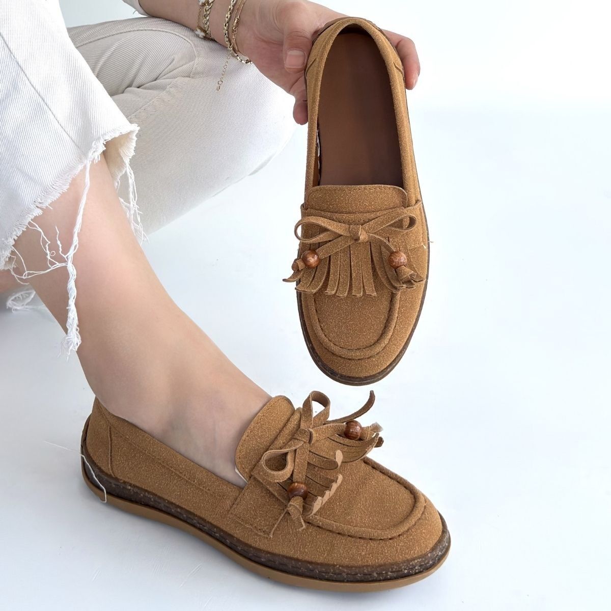 Boriy Taba Deri Tozu Süet Babet Ayakkabı