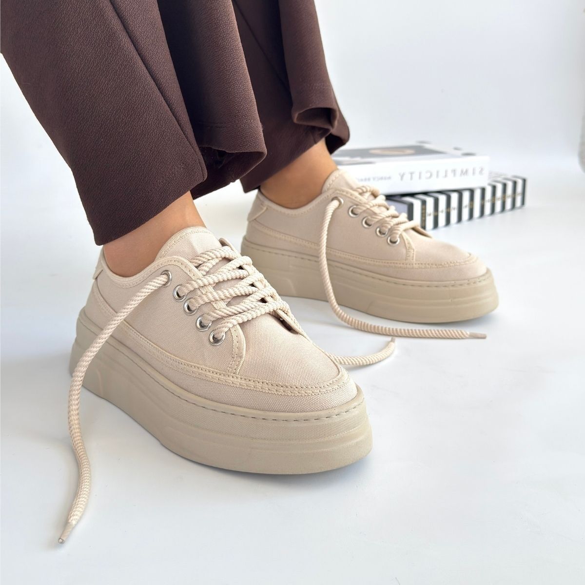 Carin Bej Keten Bağcıklı Spor Ayakkabı
