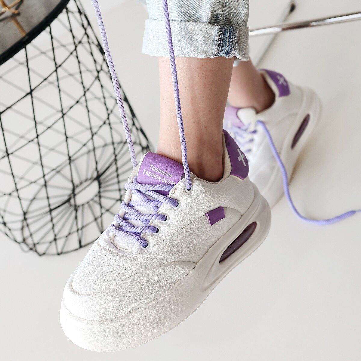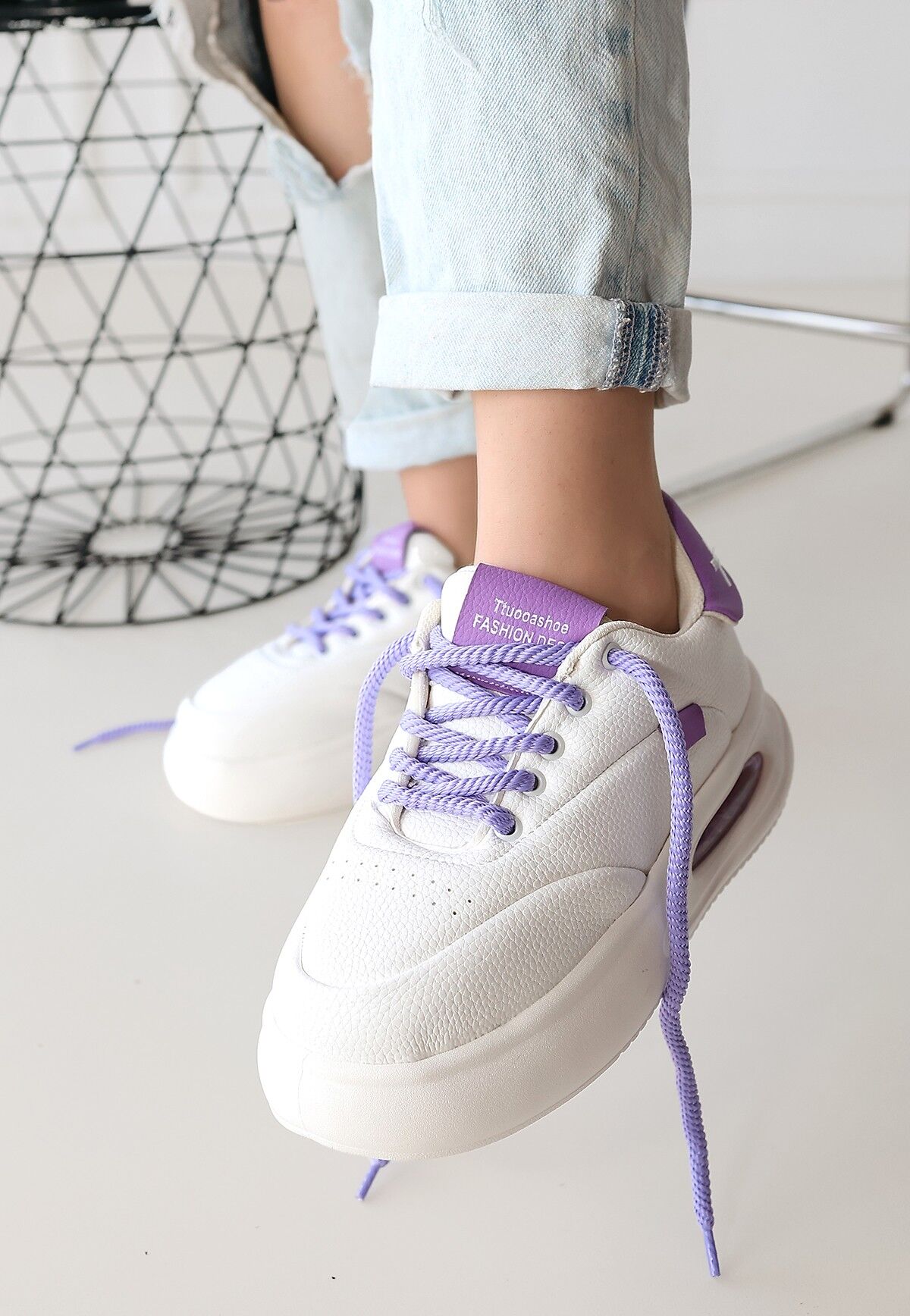 Chris Beyaz Cilt Lila Detaylı Bağcıklı Spor Ayakkabı