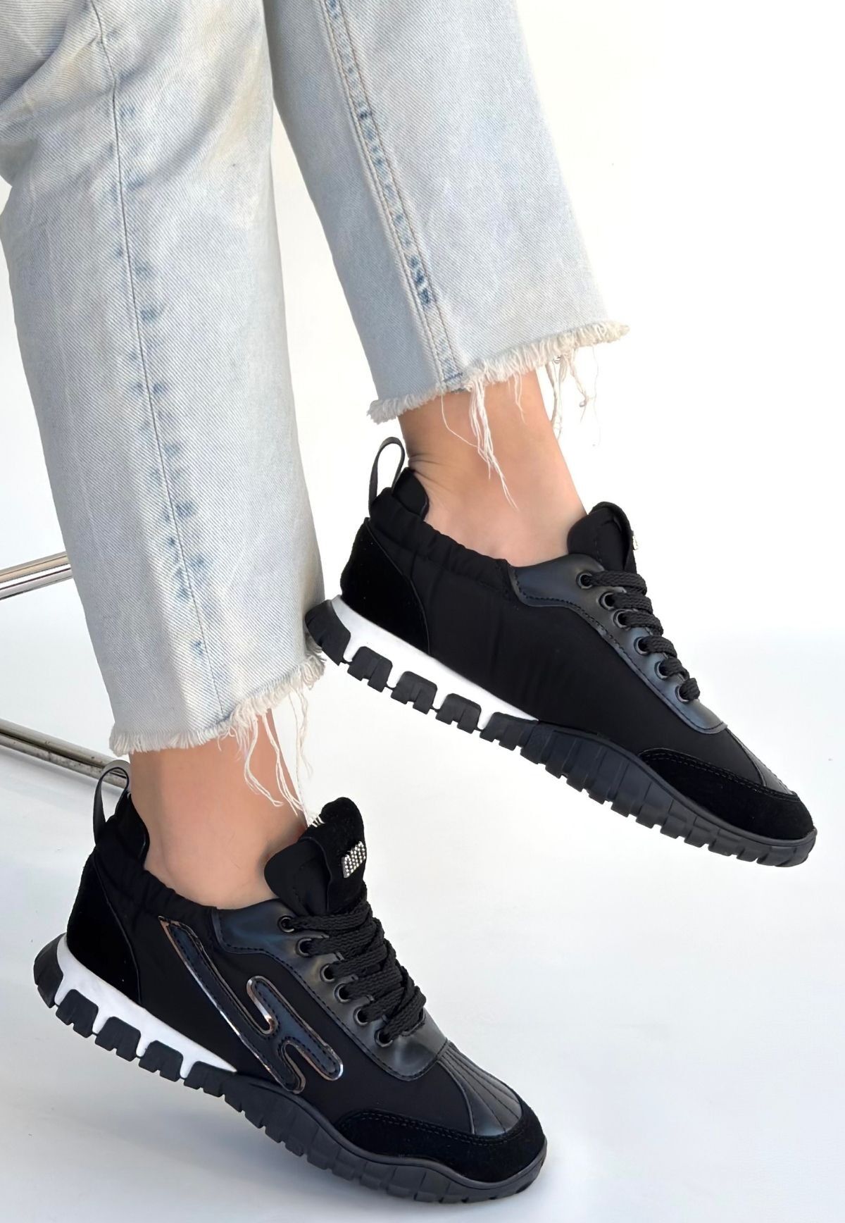 Huer Siyah Nubuk Bağcıklı Spor Ayakkabı