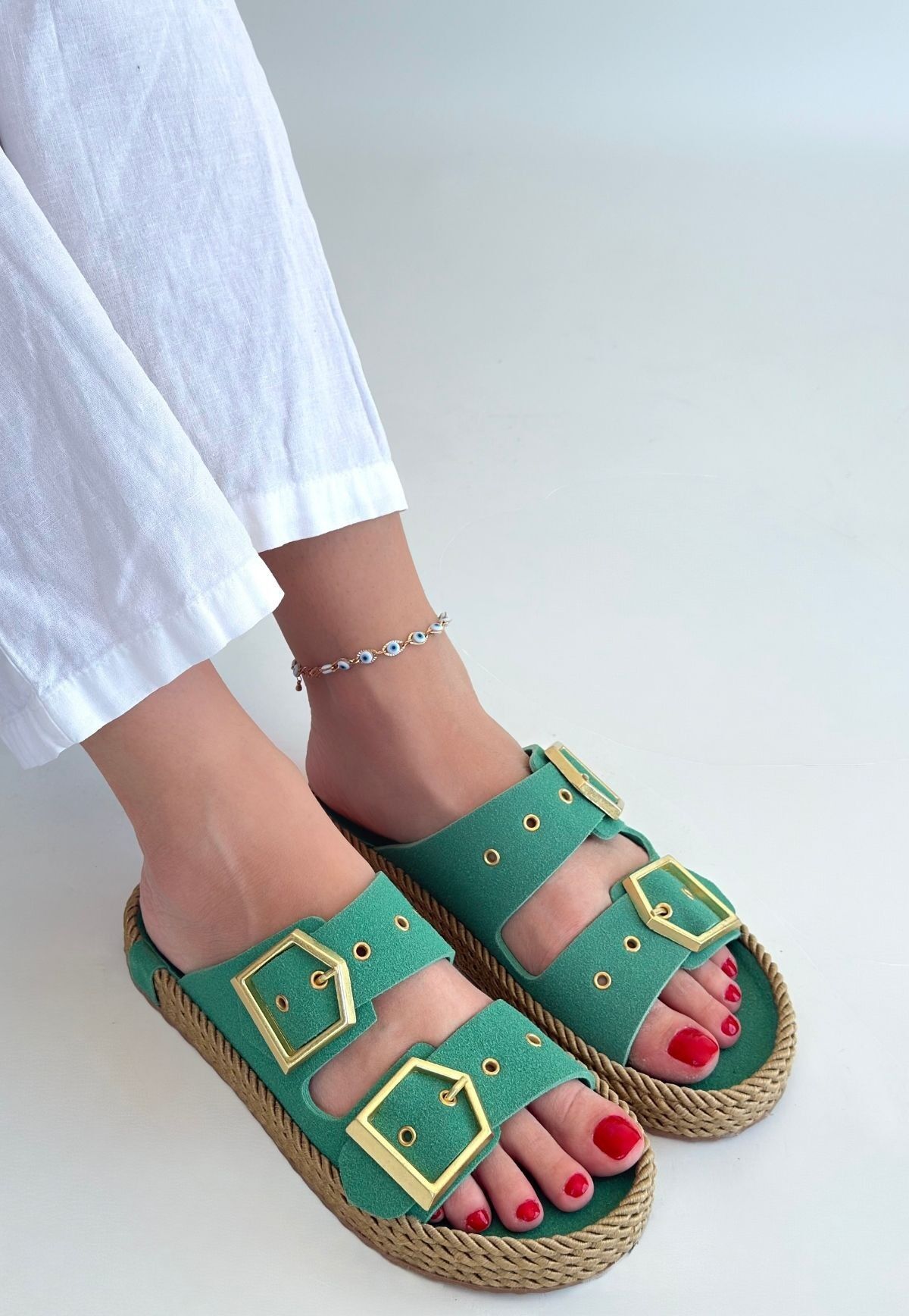 İces Yeşil Nubuk Terlik