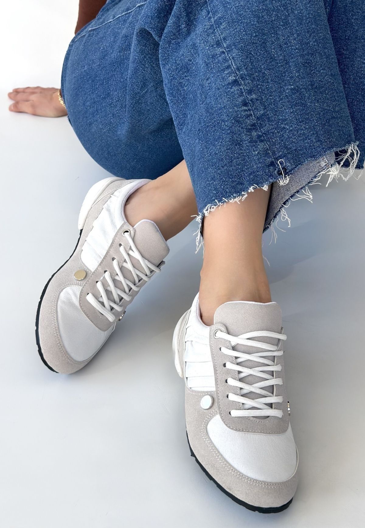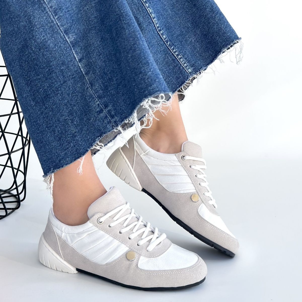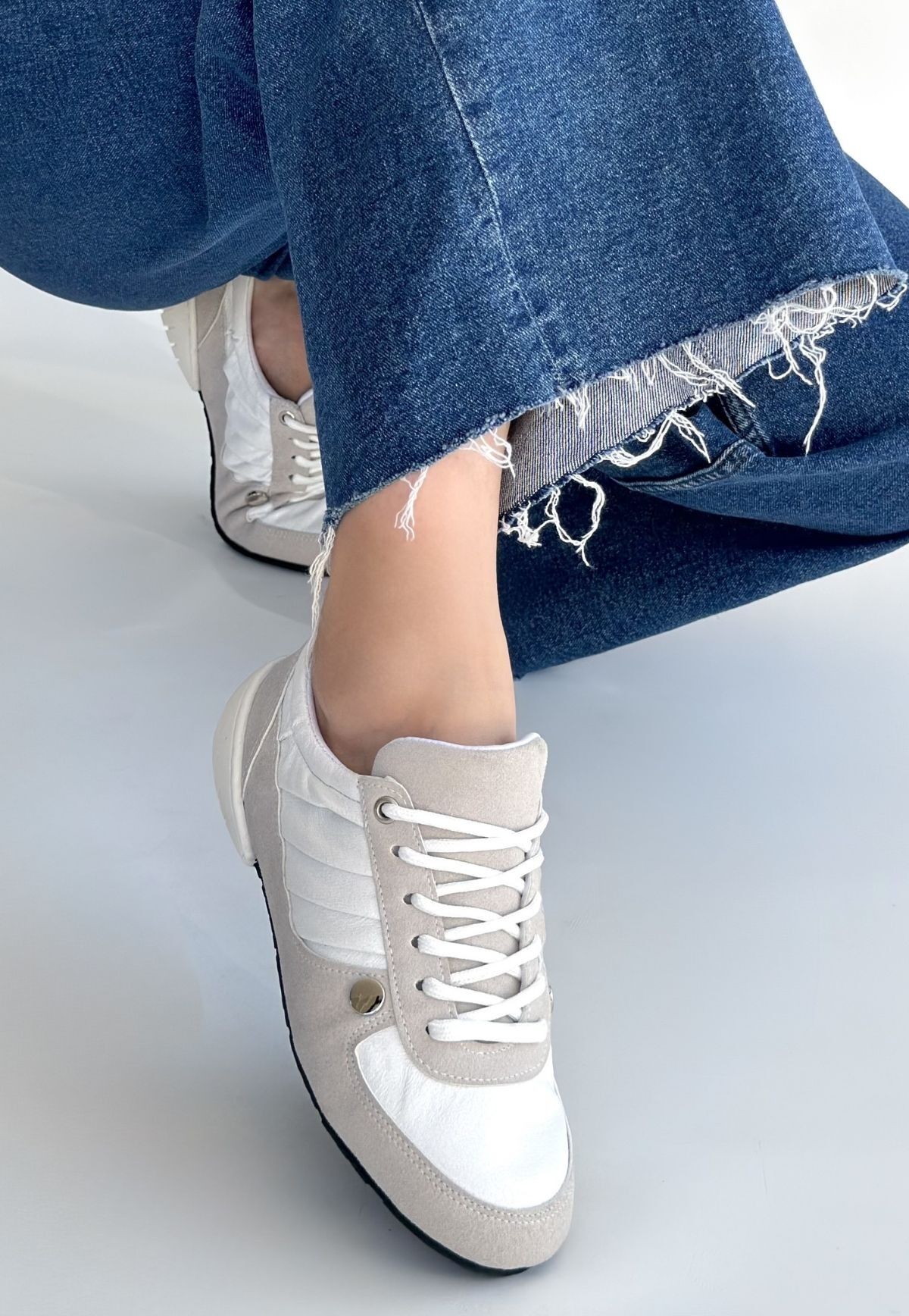 Jawen Gri Nubuk Beyaz Detaylı Spor Ayakkabı