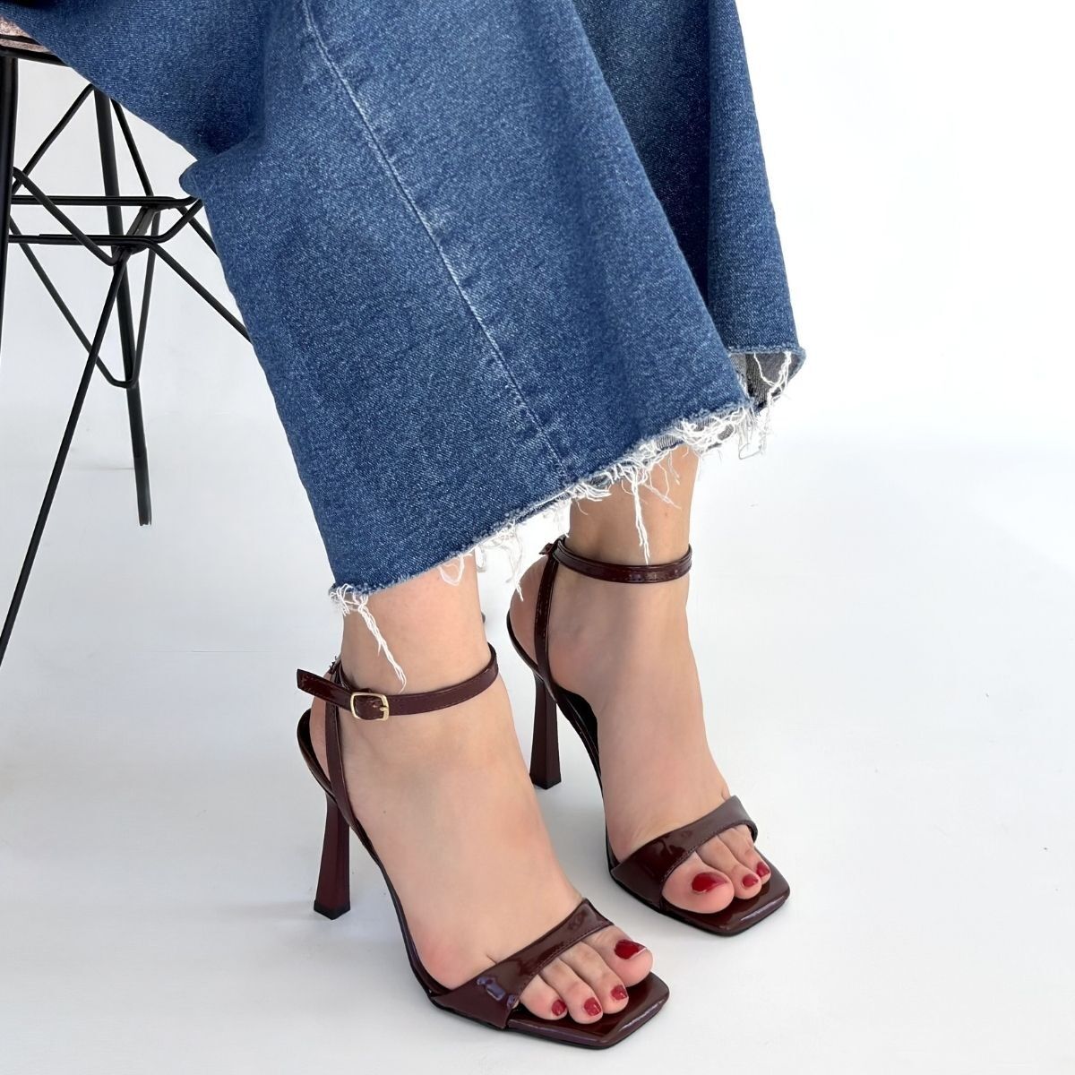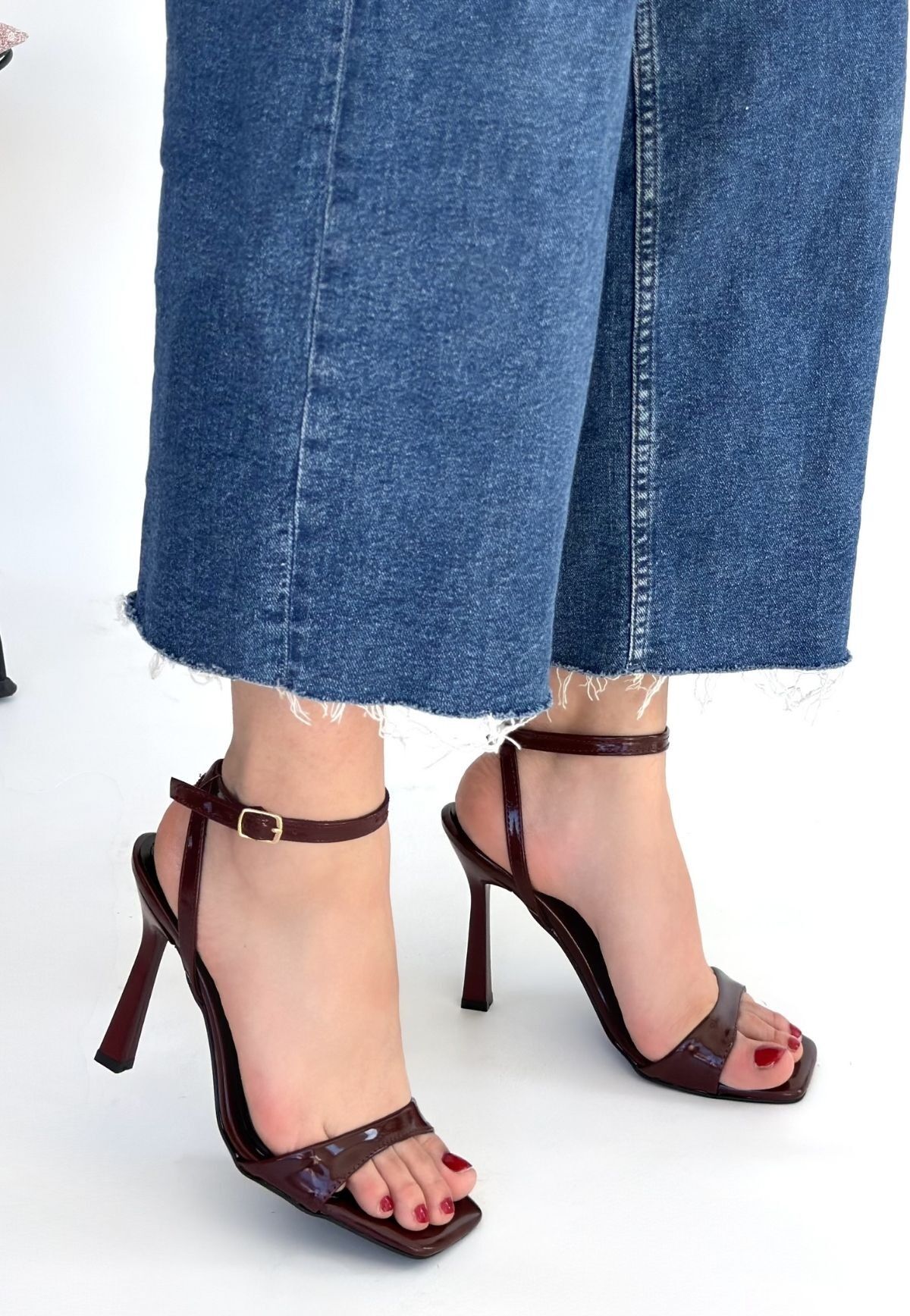 Jowin Bordo Rugan Topuklu Bilekten Kemerli Ayakkabı