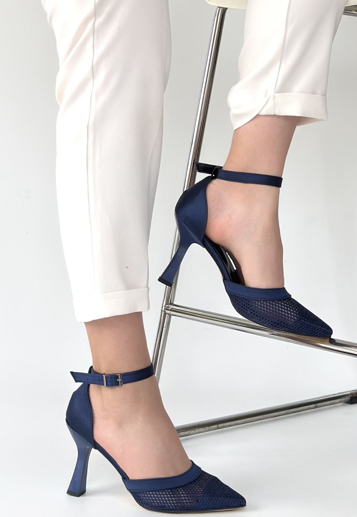 Keny Lacivert Saten Topuklu Ayakkabı