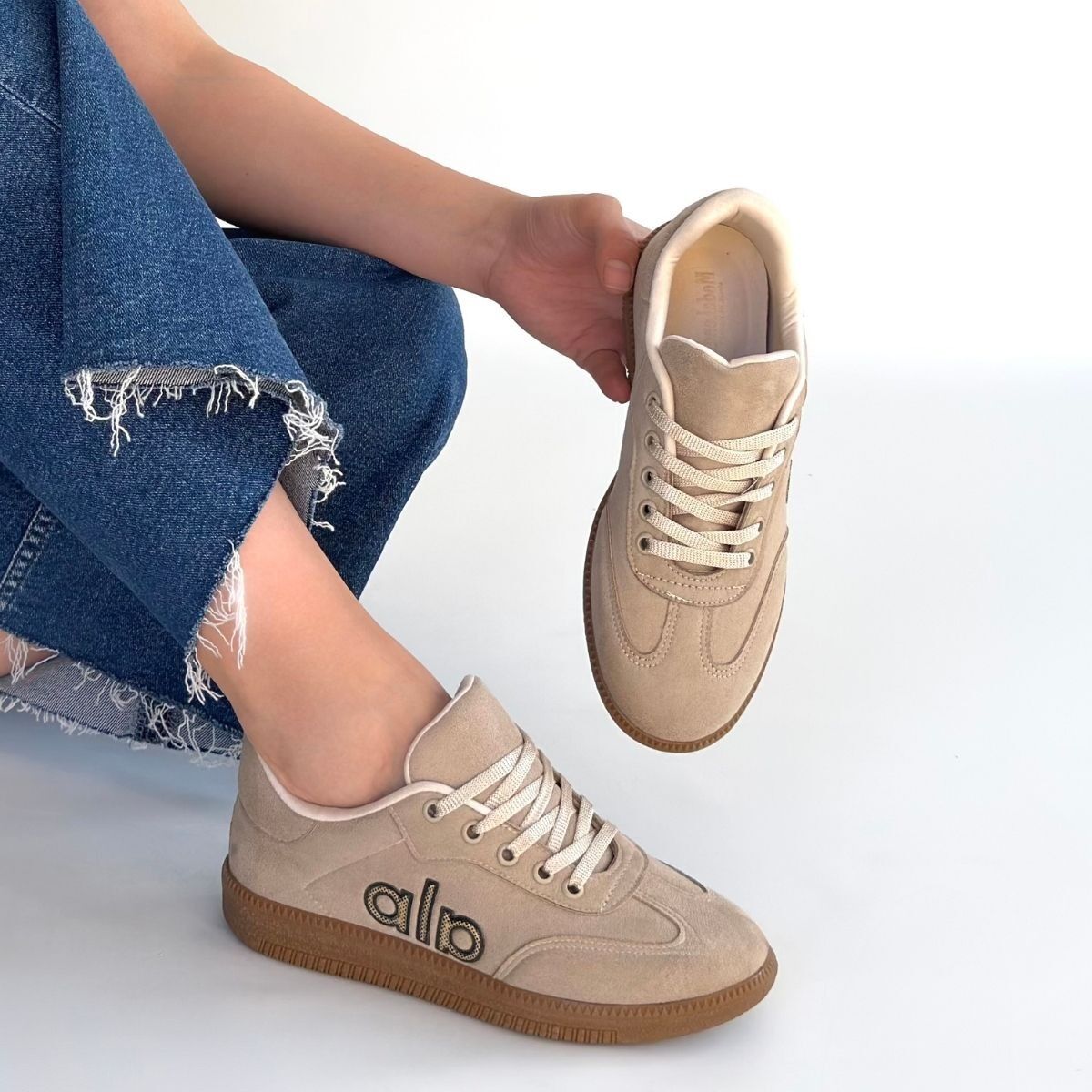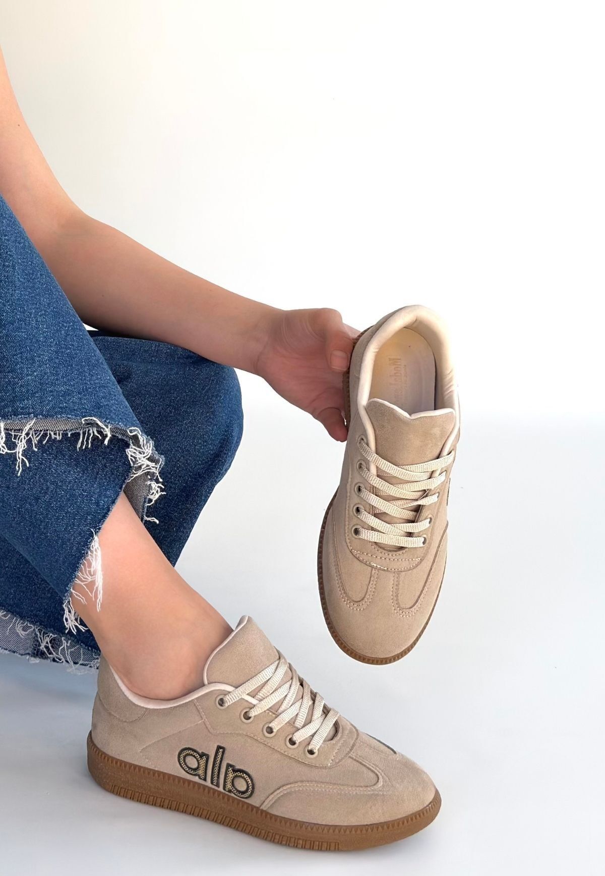 Lendo Bej Süet Bağcıklı Spor Ayakkabı