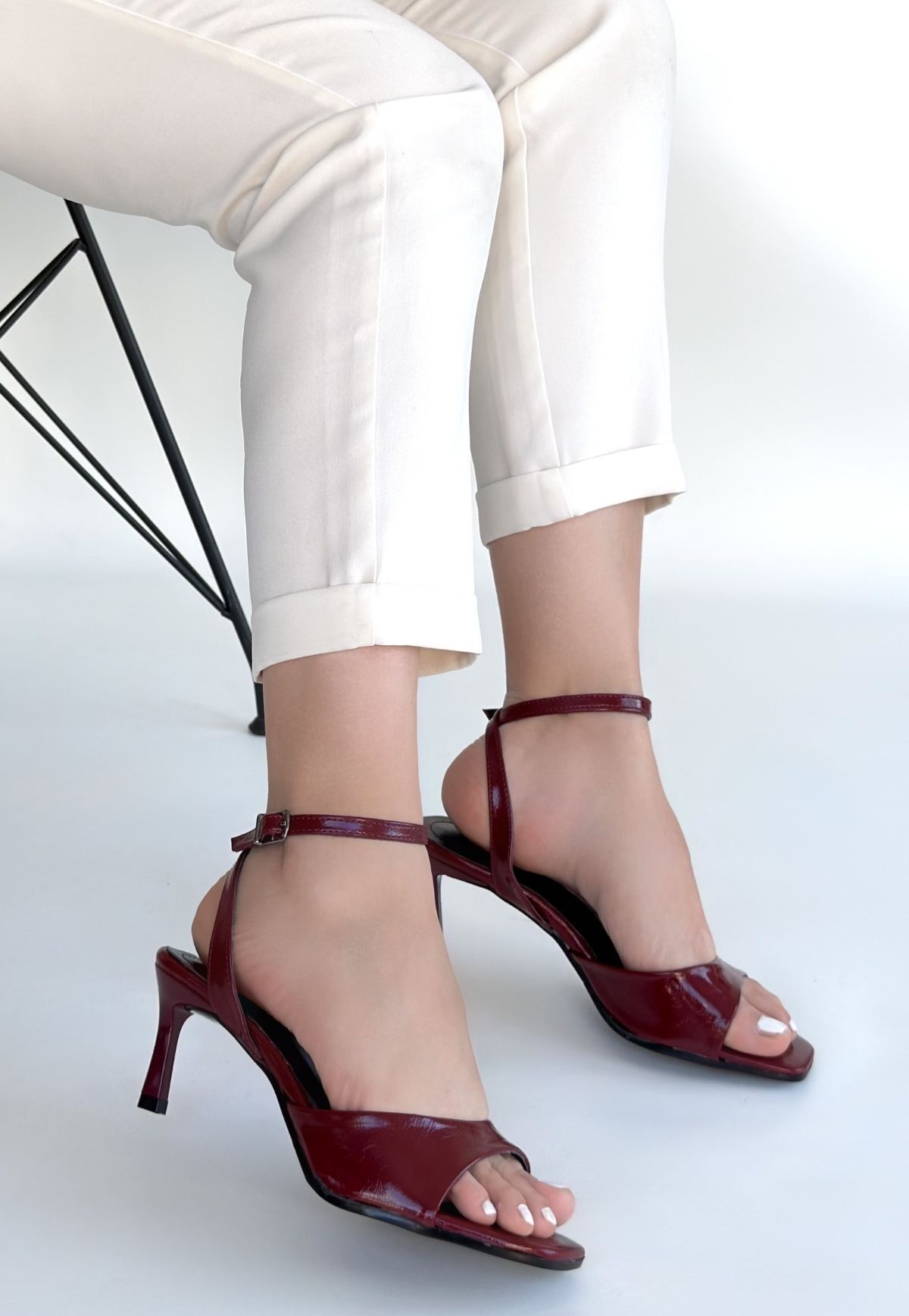 Lenya Bordo Rugan Topuklu Ayakkabı