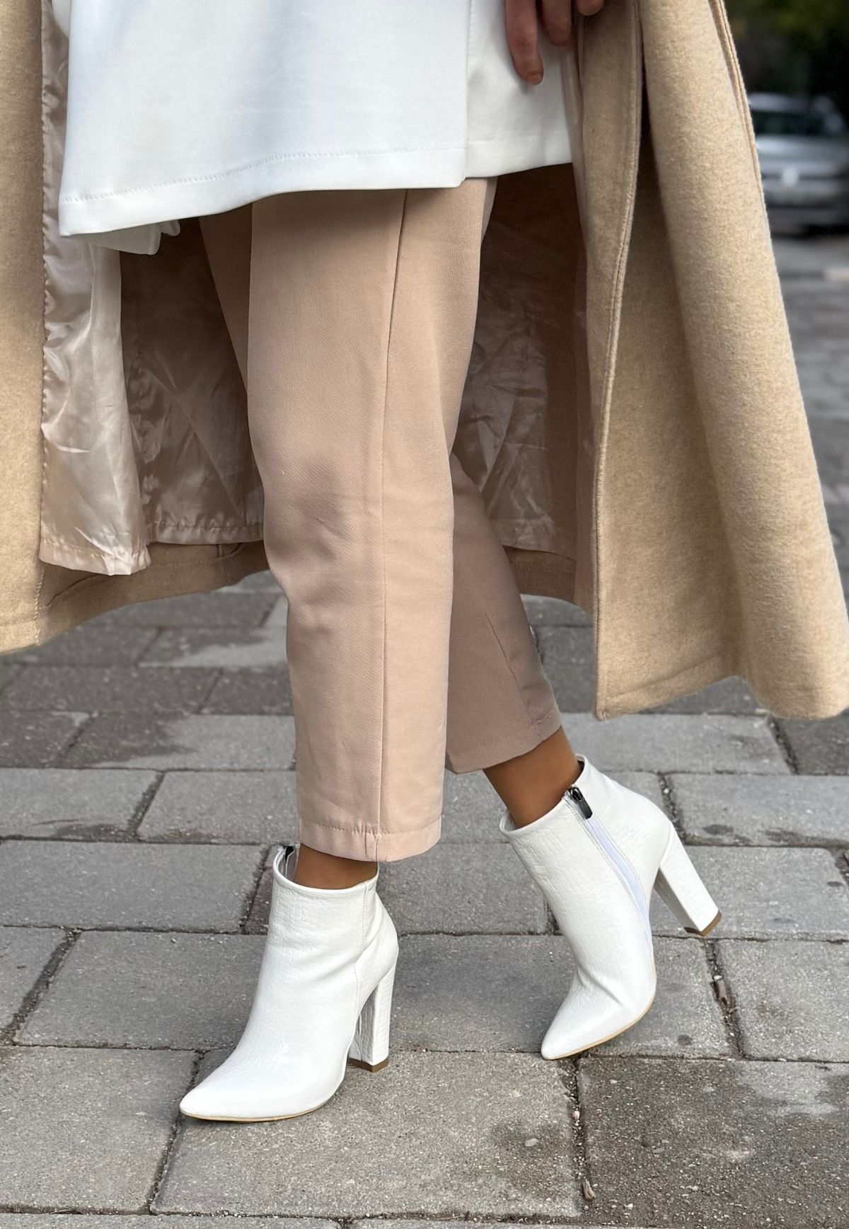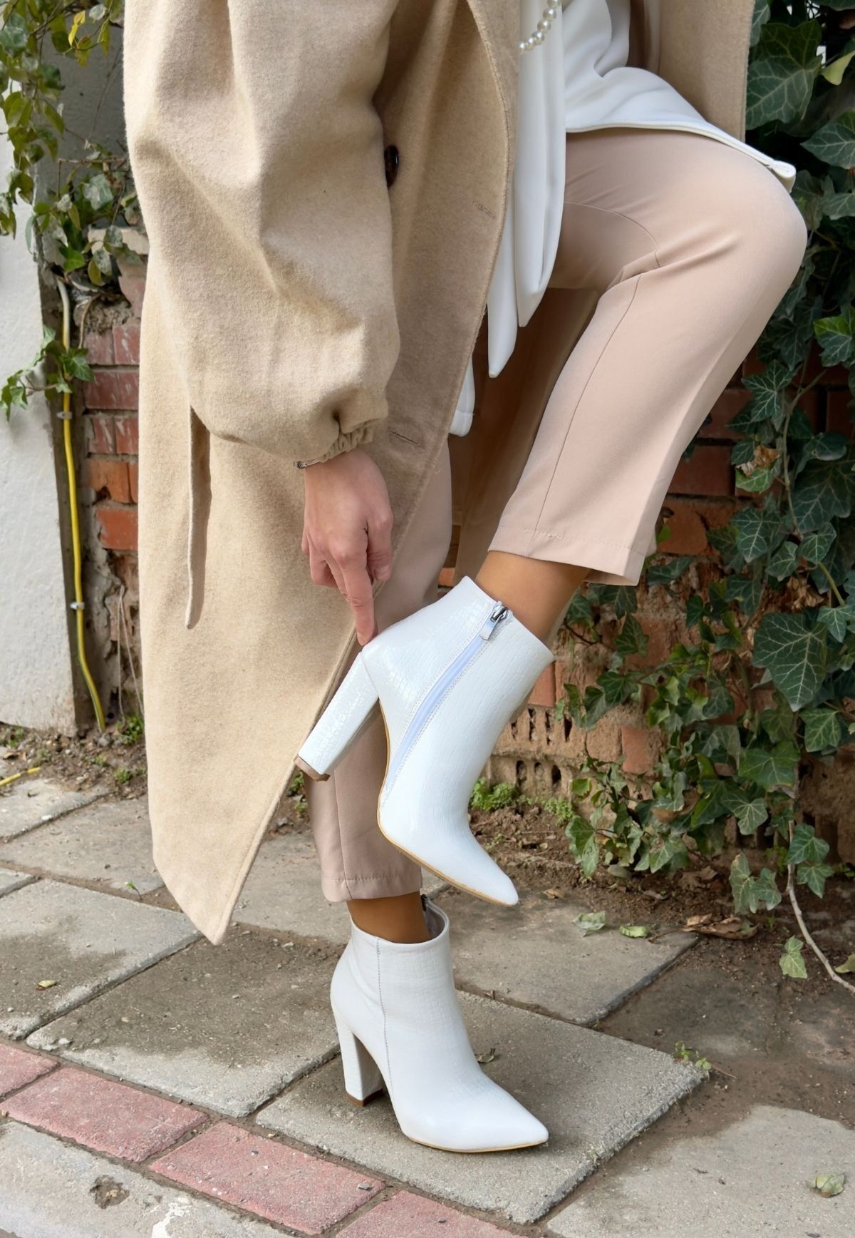 Loora Beyaz Rugan Desenli Topuklu Bot
