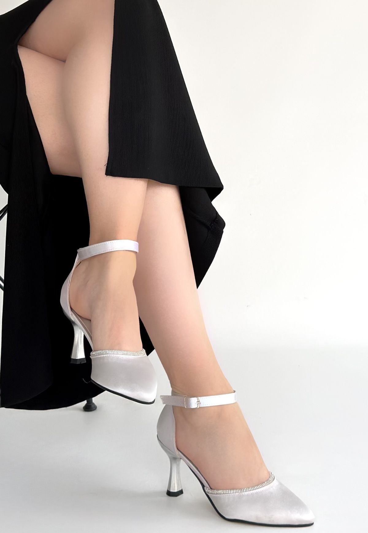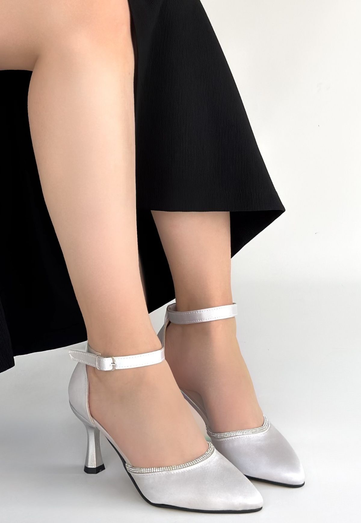Mejja Gri Saten Topuklu Ayakkabı