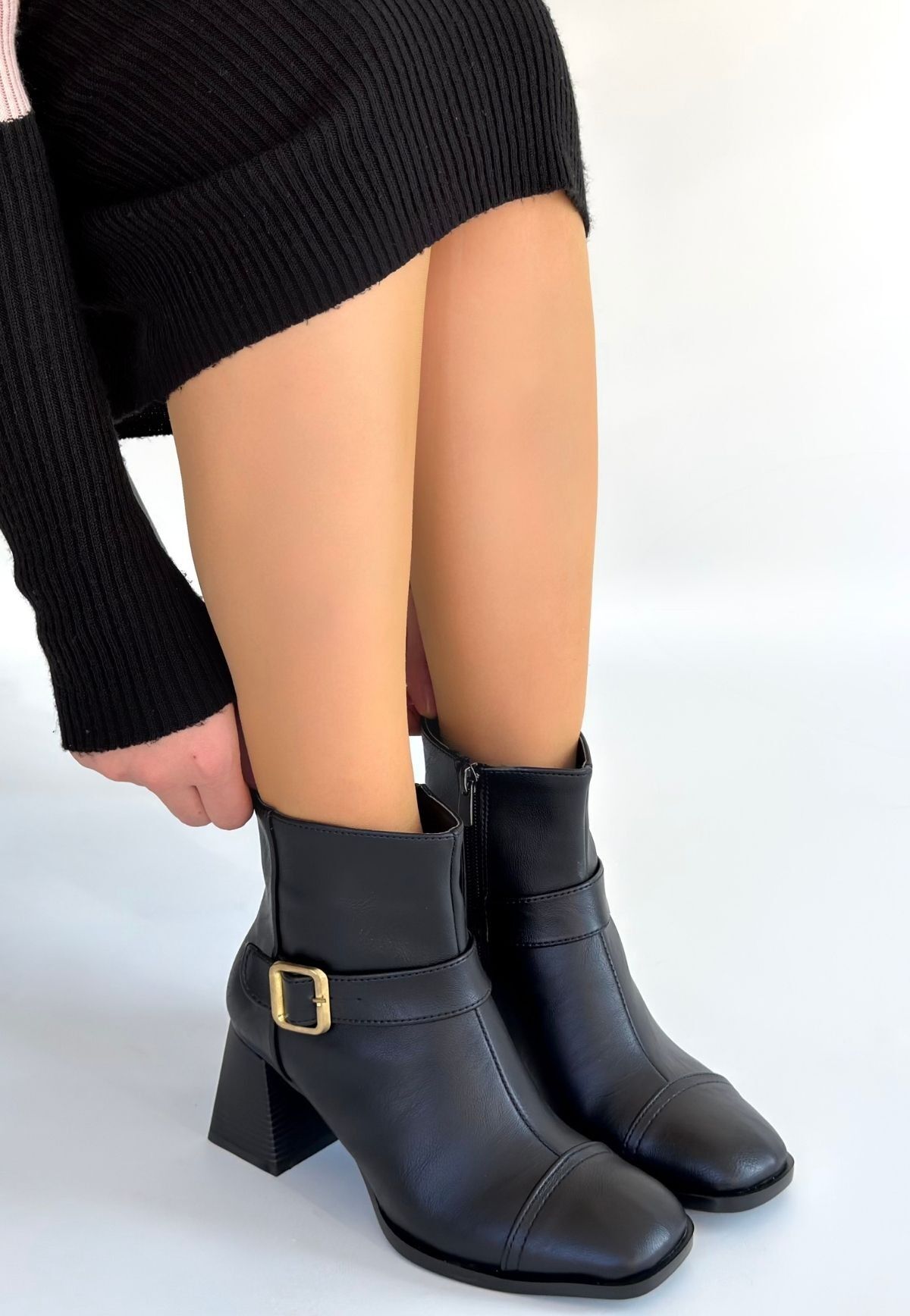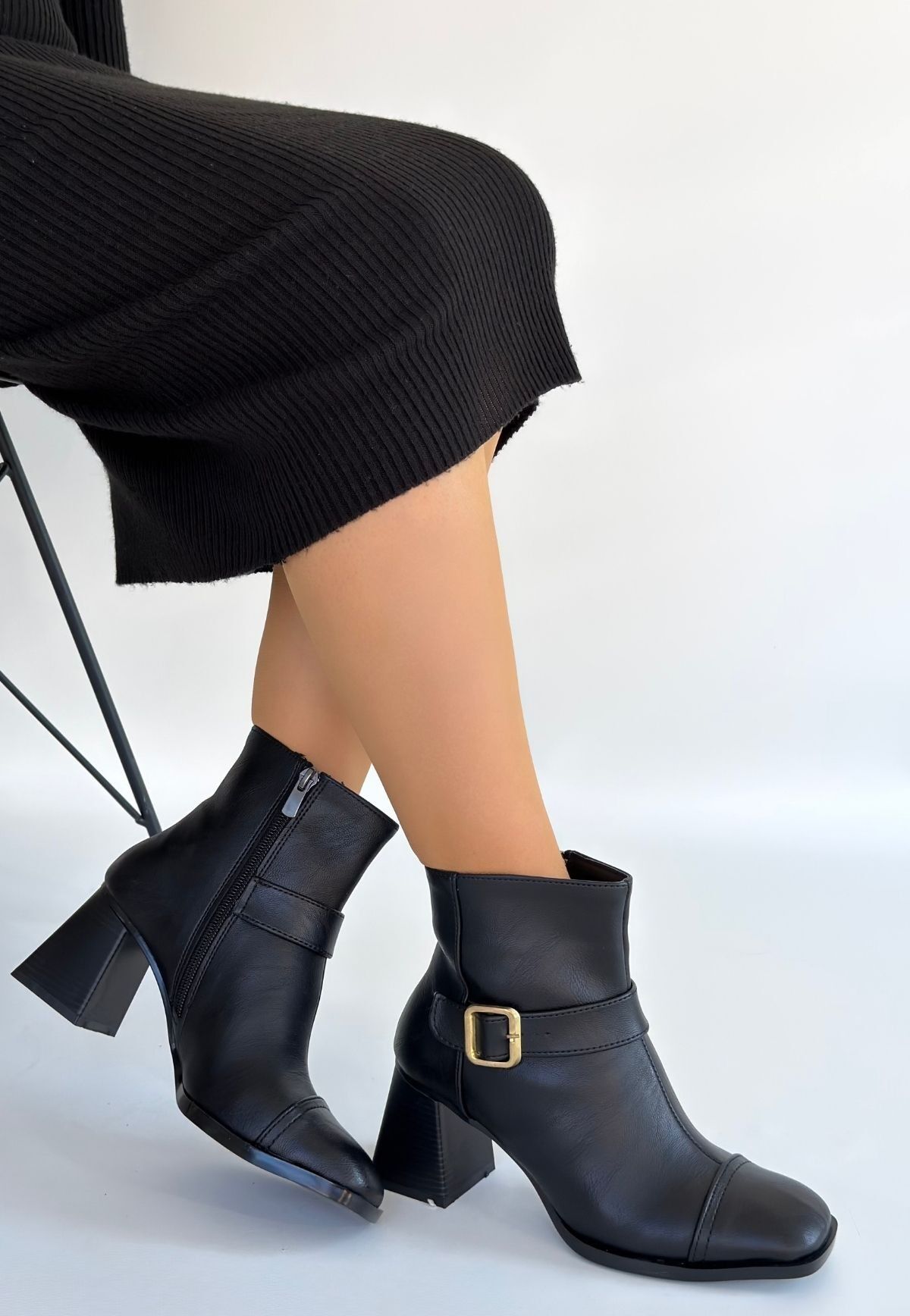 Mejjo Siyah Cilt Topuklu Bot