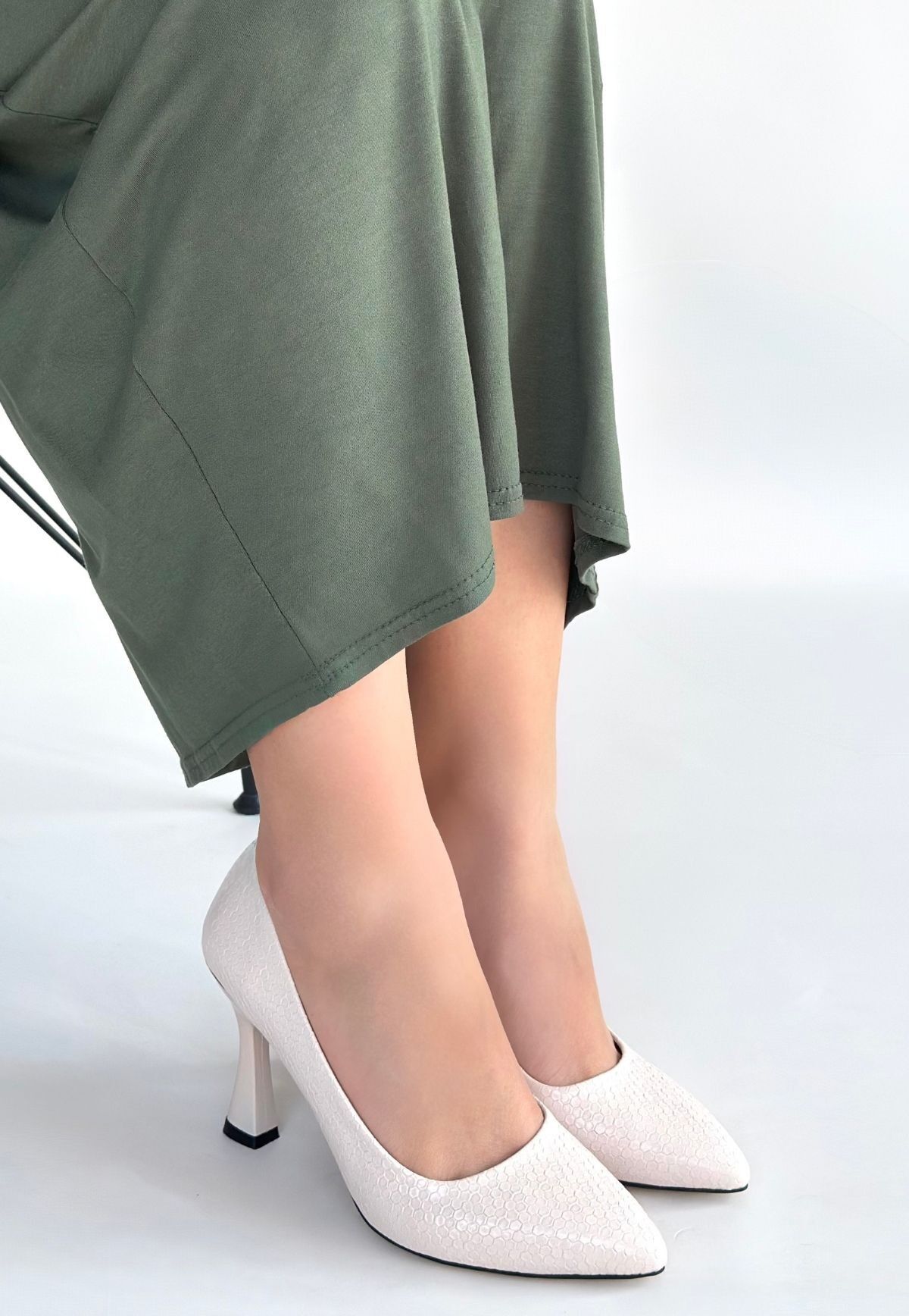 Merio Bej Baskılı Rugan Topuklu Ayakkabı a_DES-KDN-KTP-266643