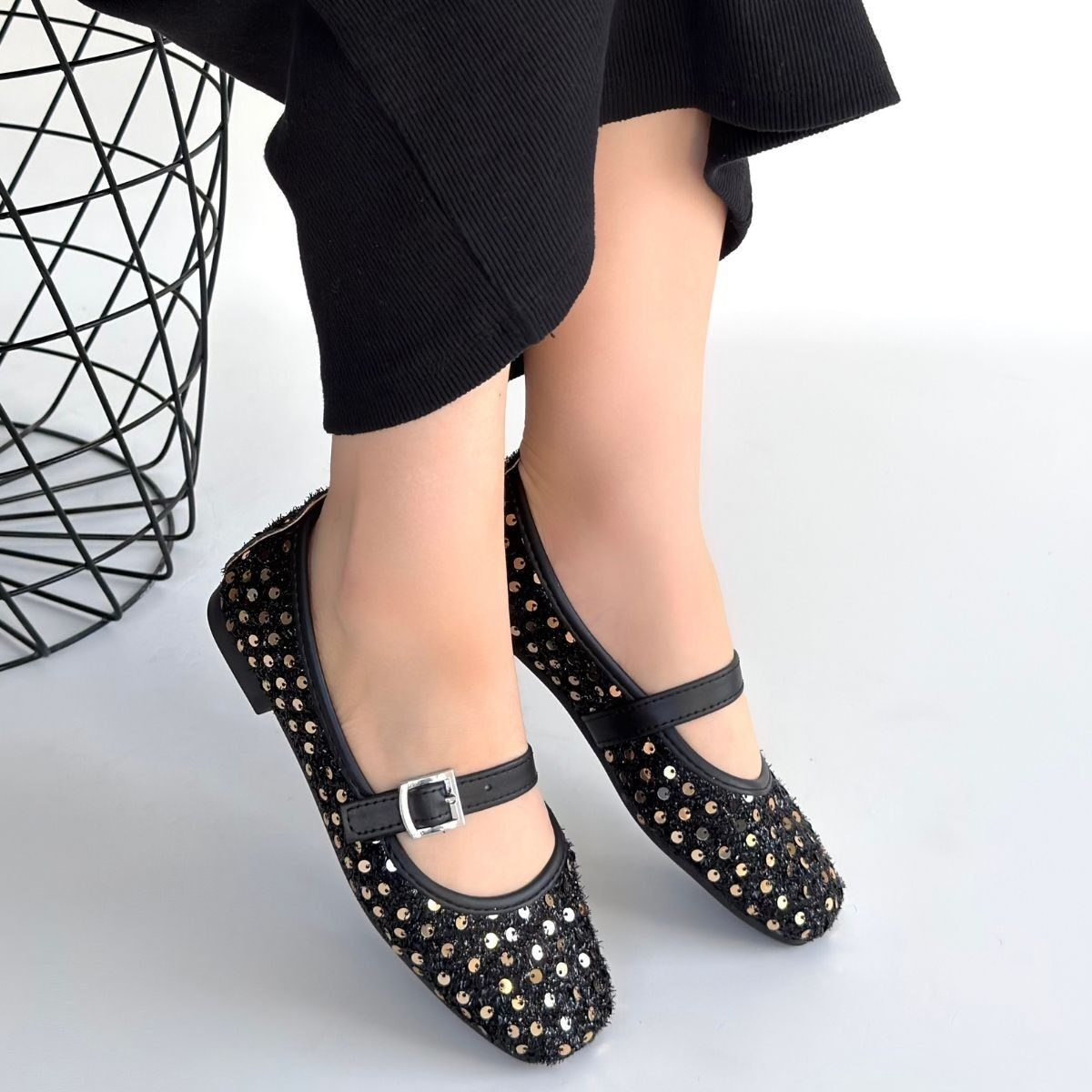 Moden Siyah Süet Babet Ayakkabı