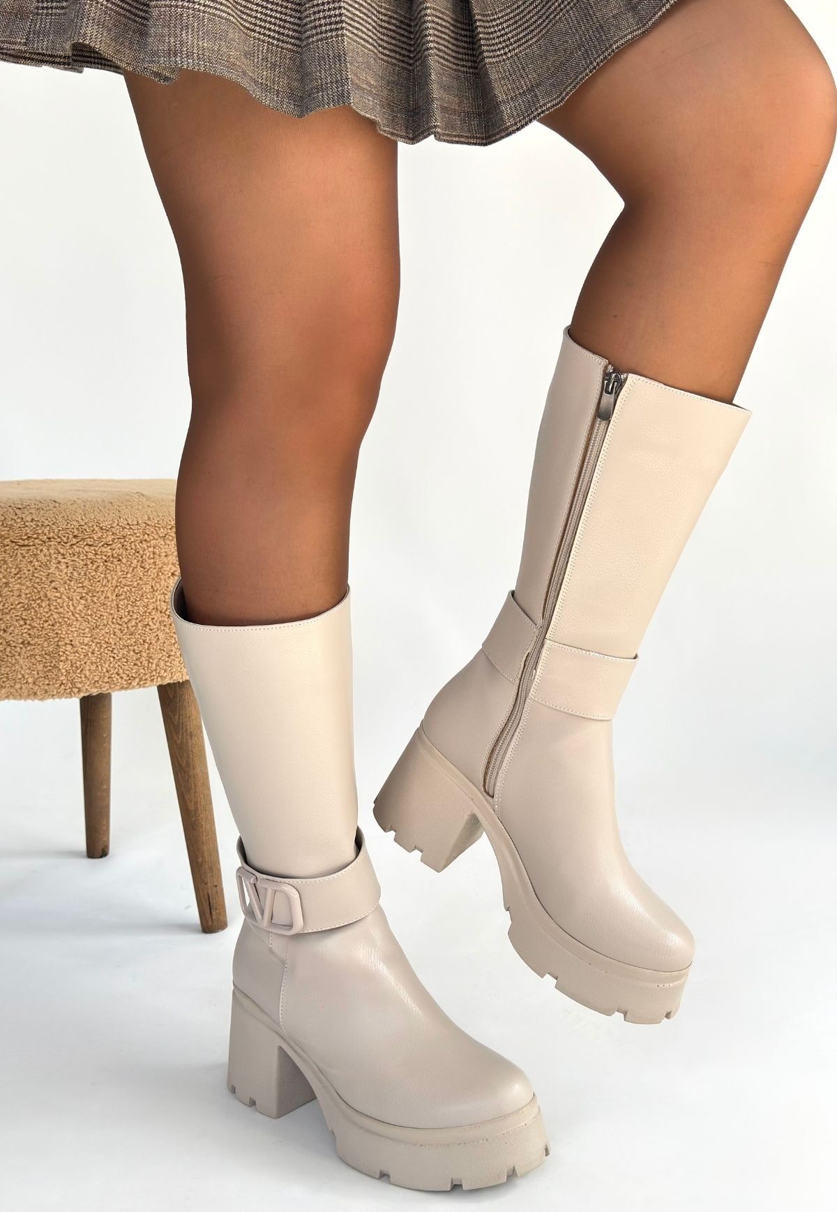 Moki Bej Cilt Topuklu Çizme a_GAB-KDN-CZM-266107