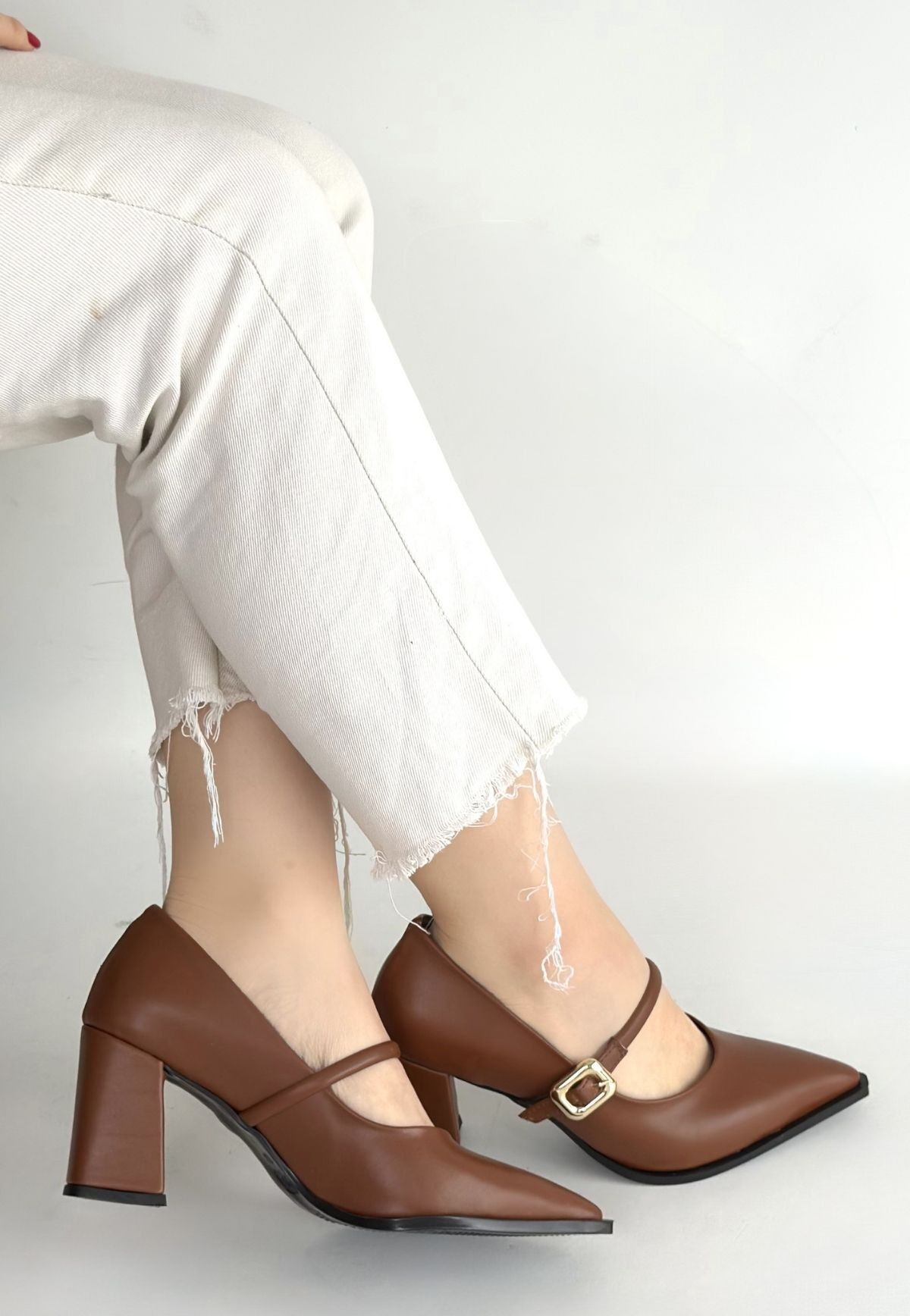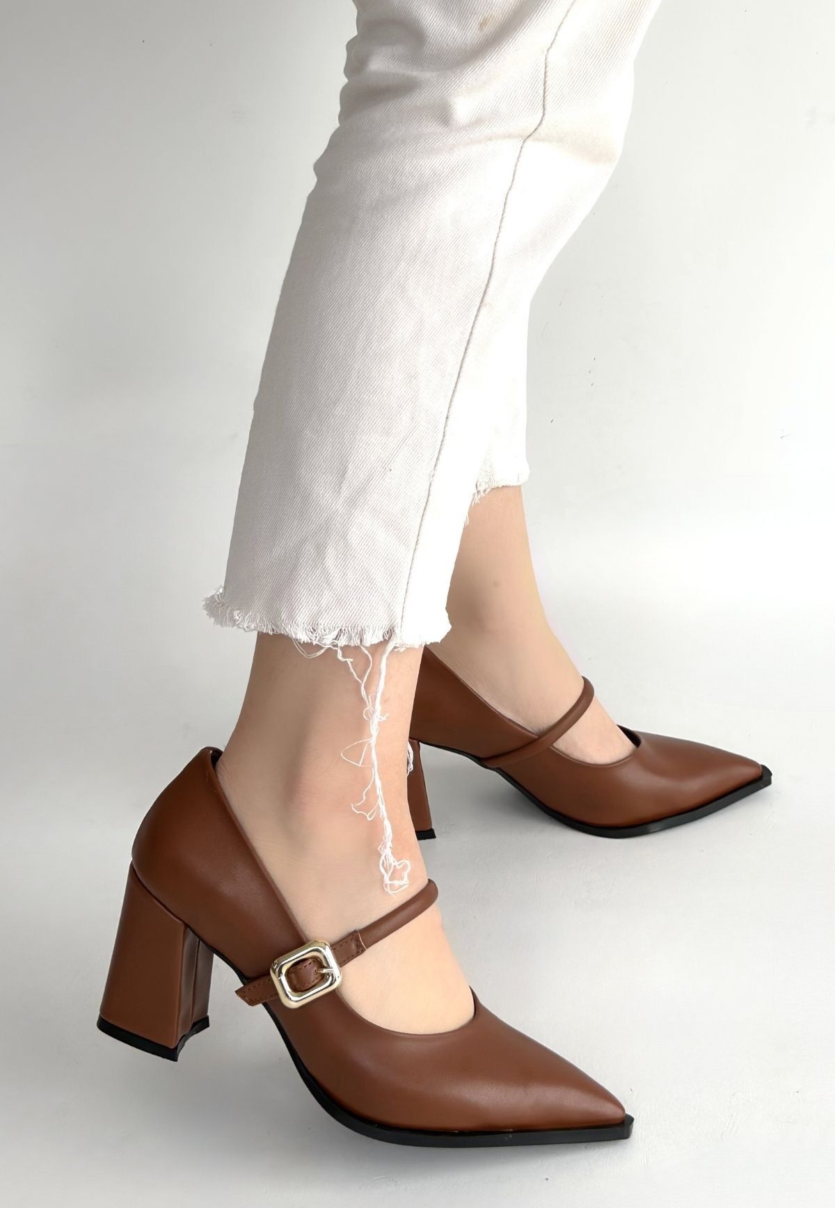Nıvra Taba Cilt Topuklu Ayakkabı