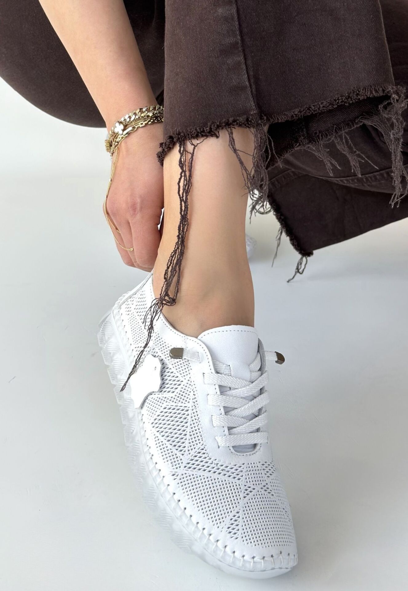 Omma Beyaz Deri Lazerli Bağcıklı Spor Ayakkabı