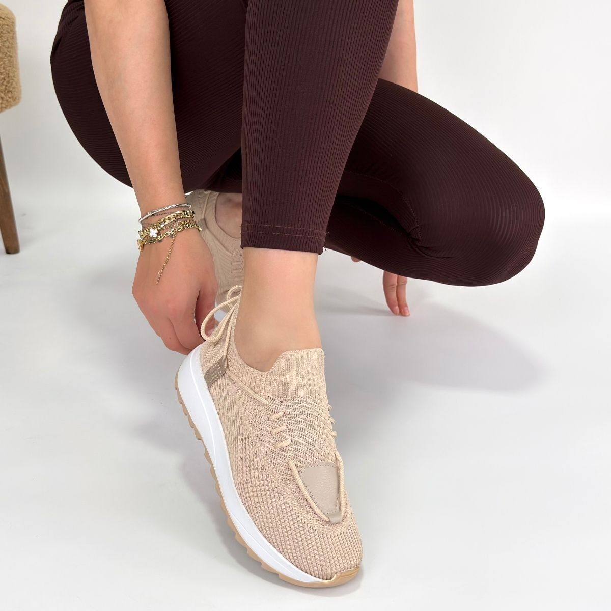 Renji Bej Triko Bağcıklı Spor Ayakkabı