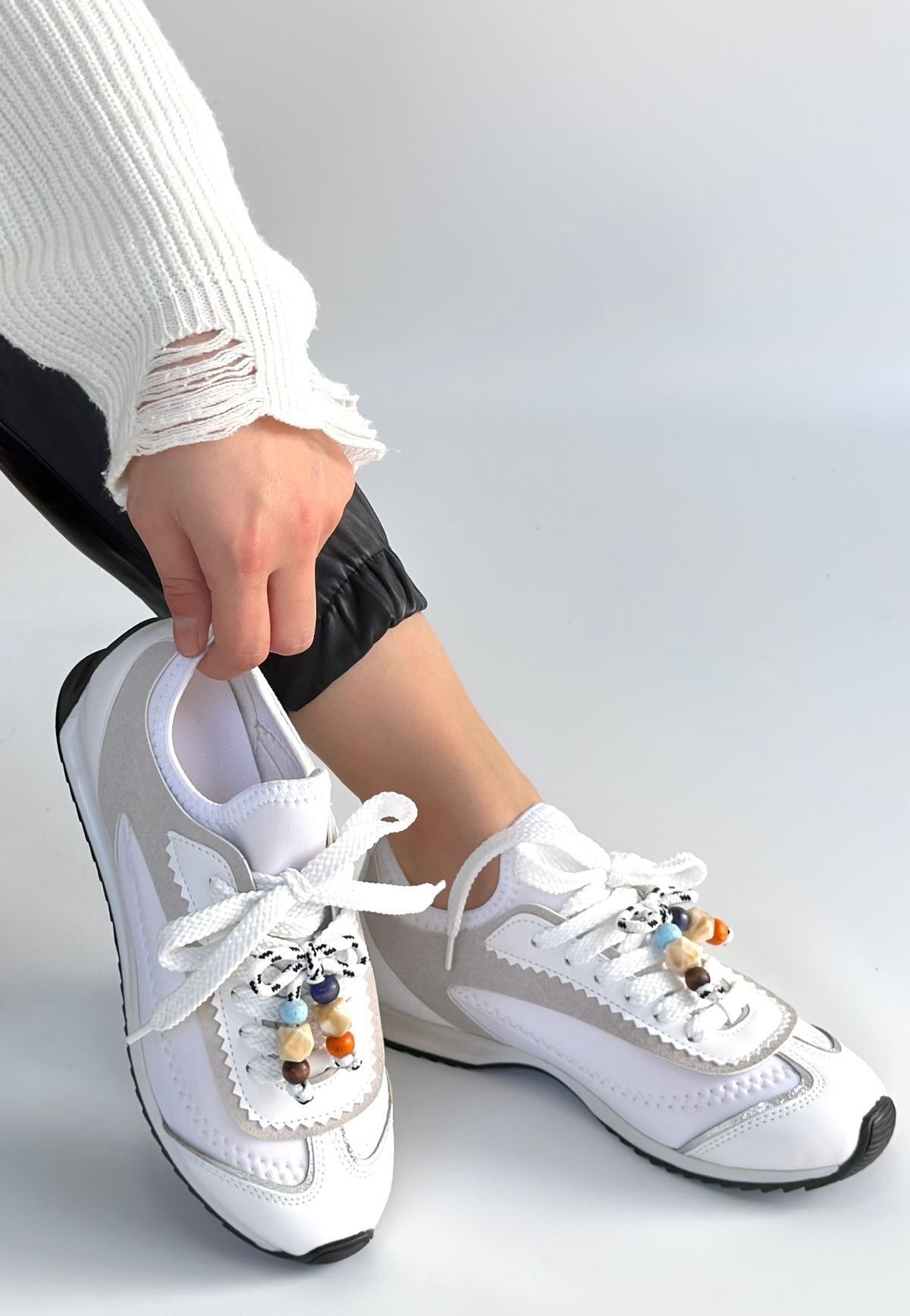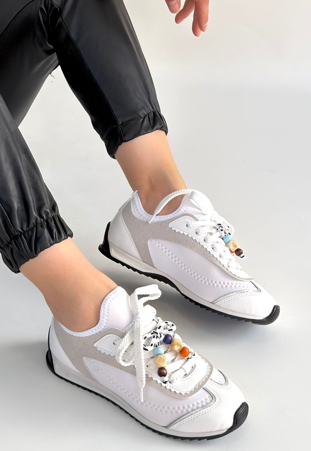 Riaf Beyaz Cilt Bağcıklı Spor Ayakkabı a_FLO-KDN-KSP-267277