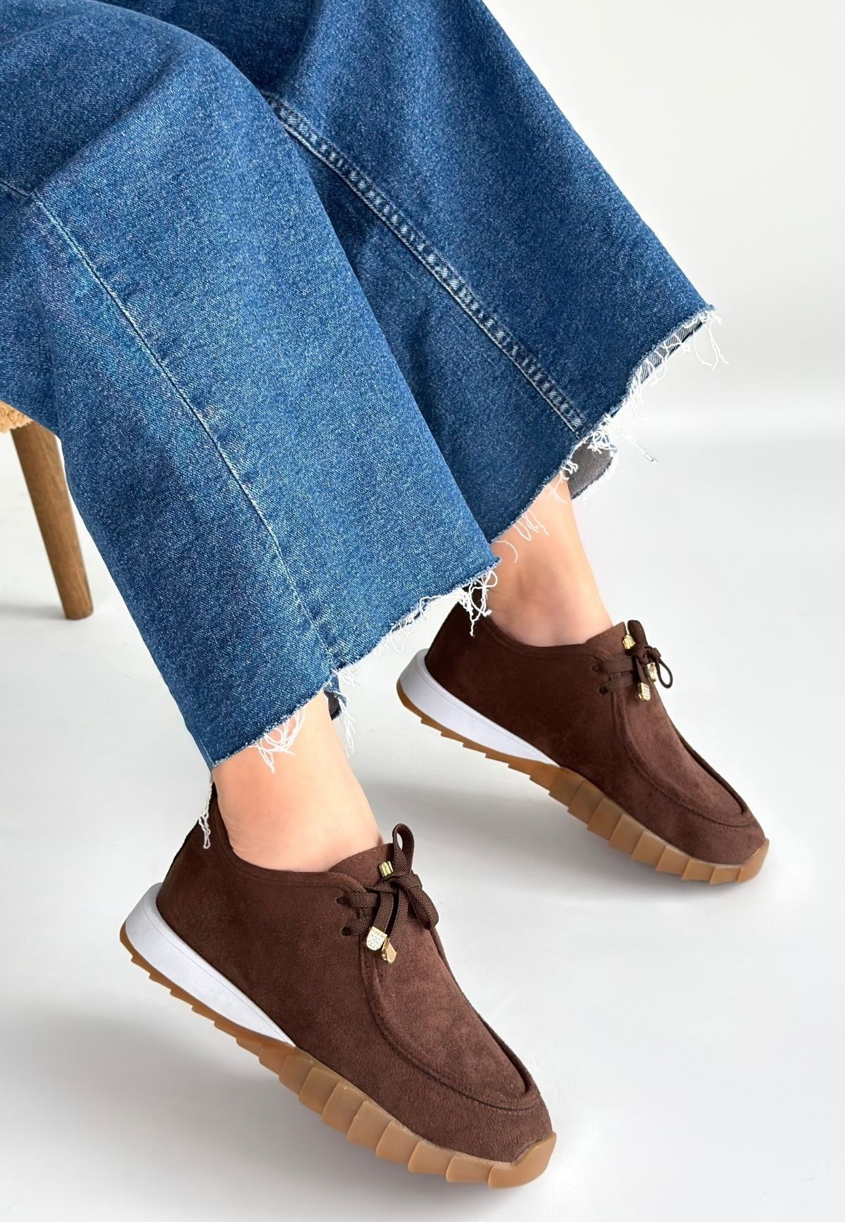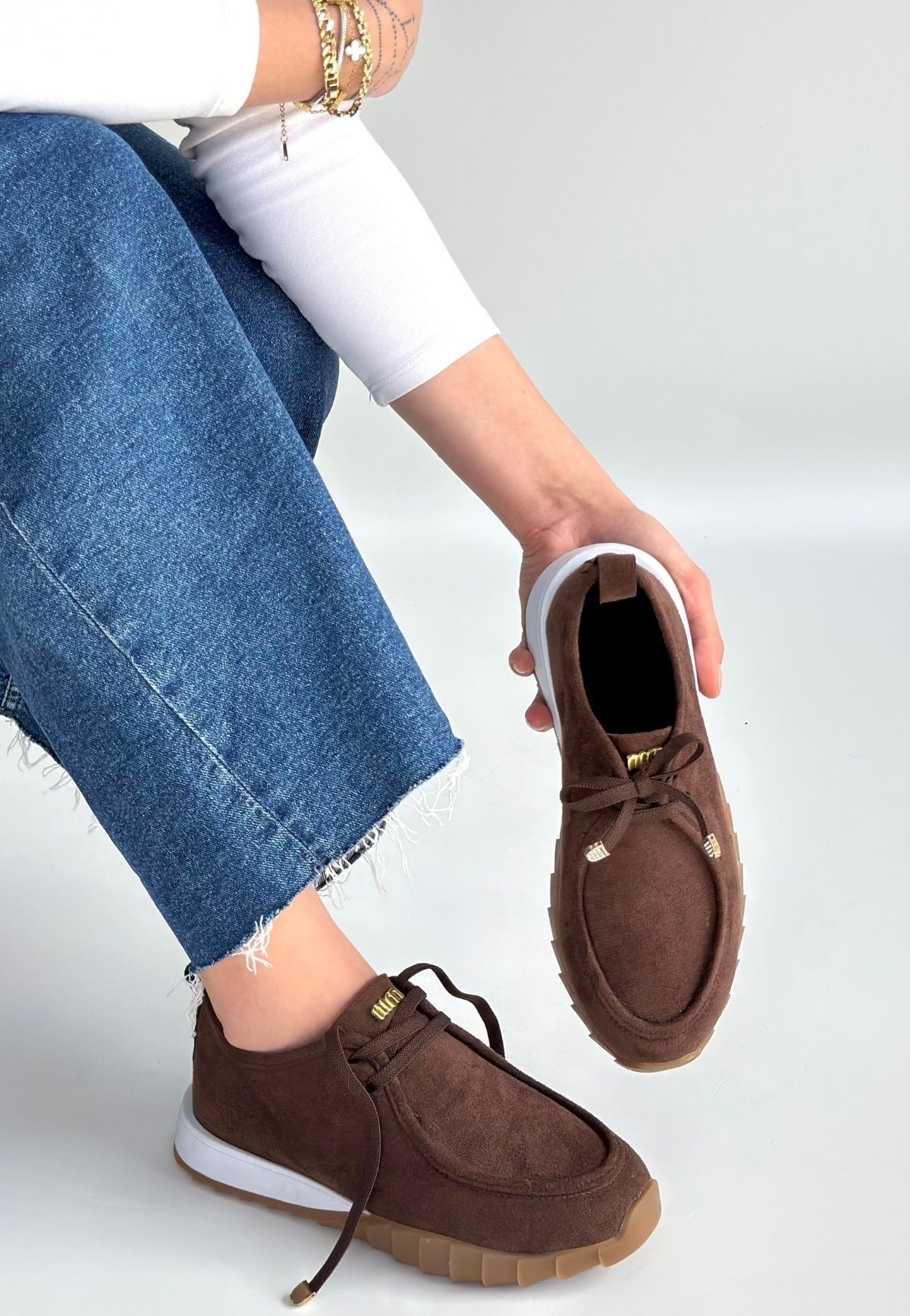 Sier Kahverengi Süet Bağcıklı Spor Ayakkabı