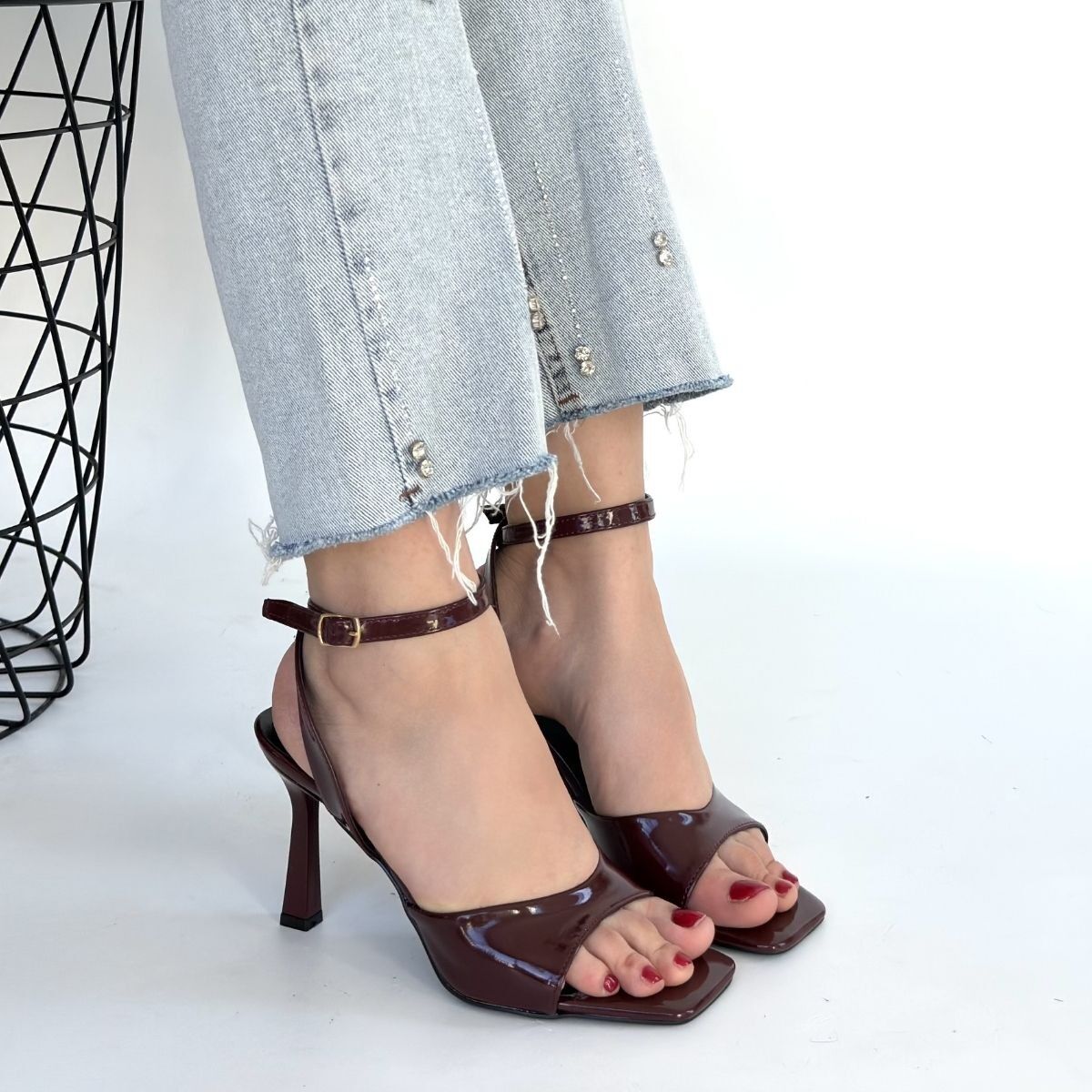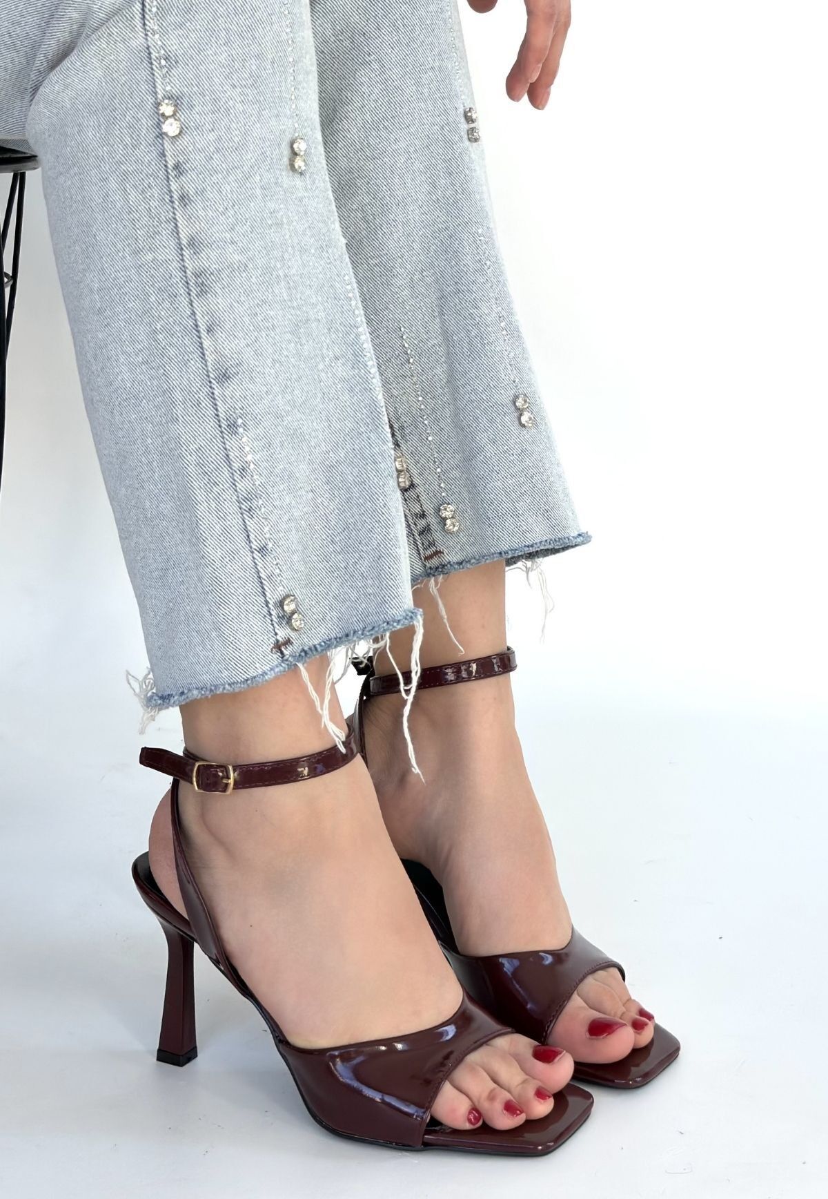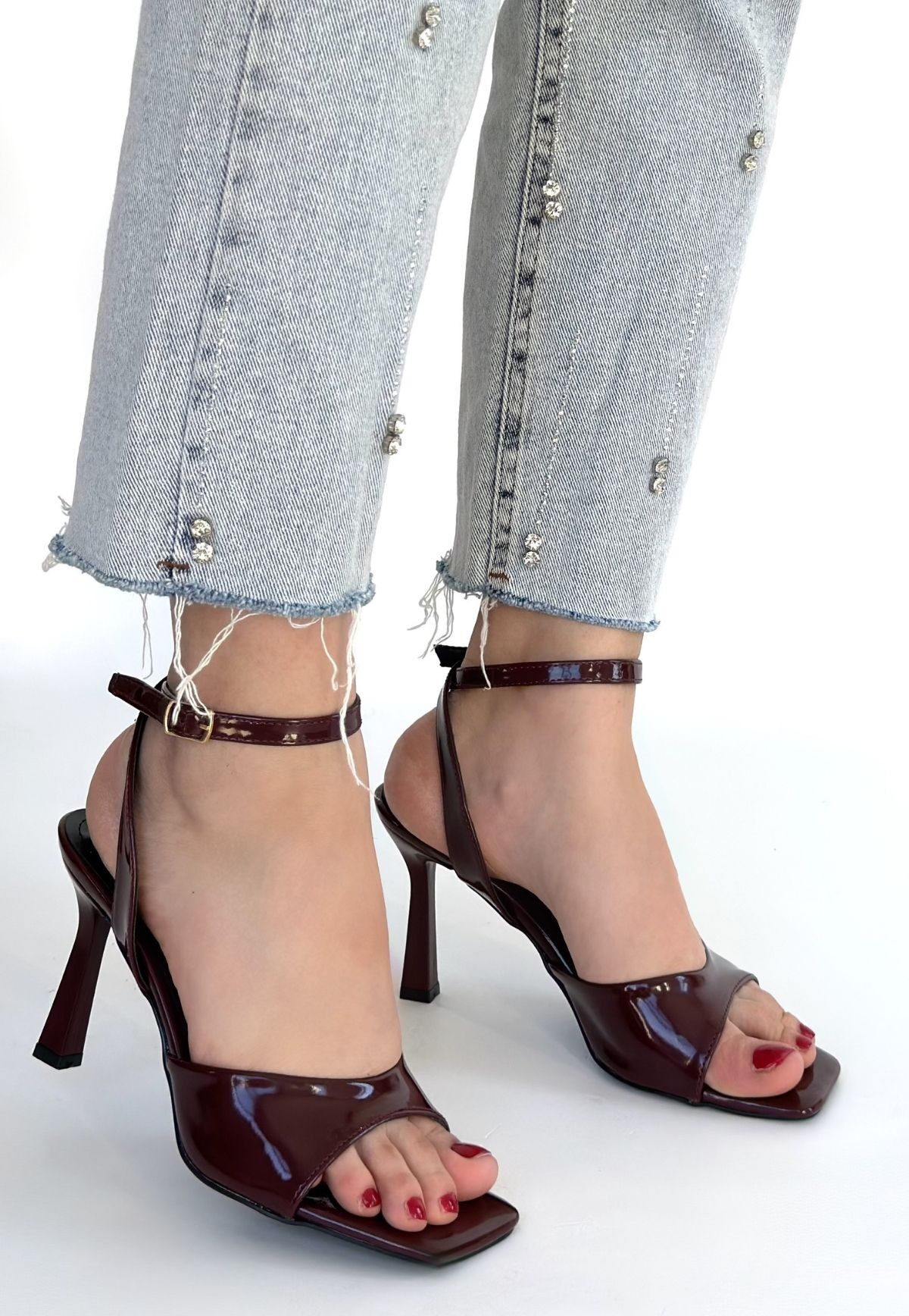 Soha Bordo Rugan Topuklu Bilekten Kemerli Ayakkabı