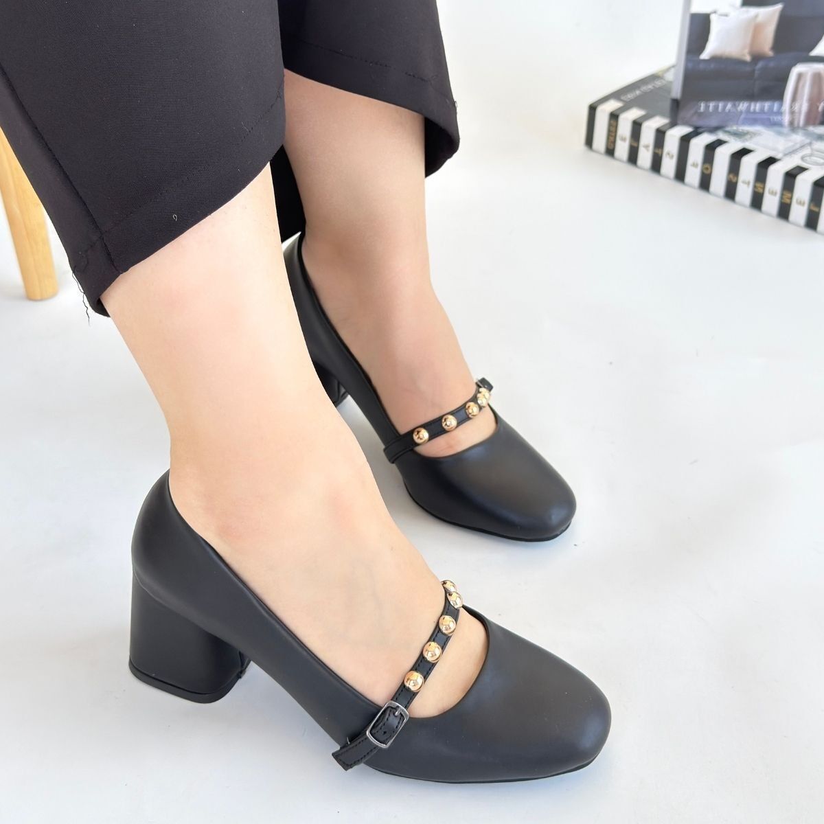 Tino Siyah Cilt Topuklu Ayakkabı