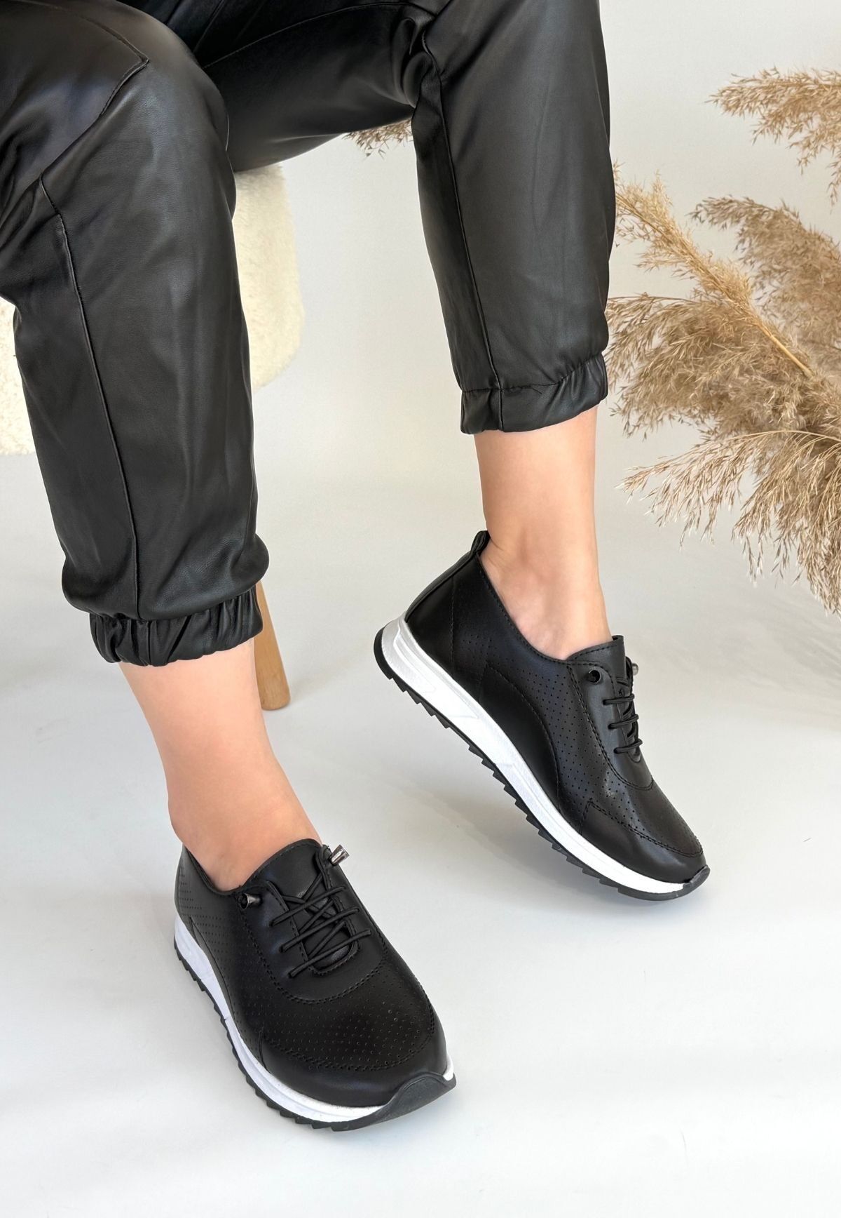 Tone Siyah Cilt Bağcıklı Spor Ayakkabı