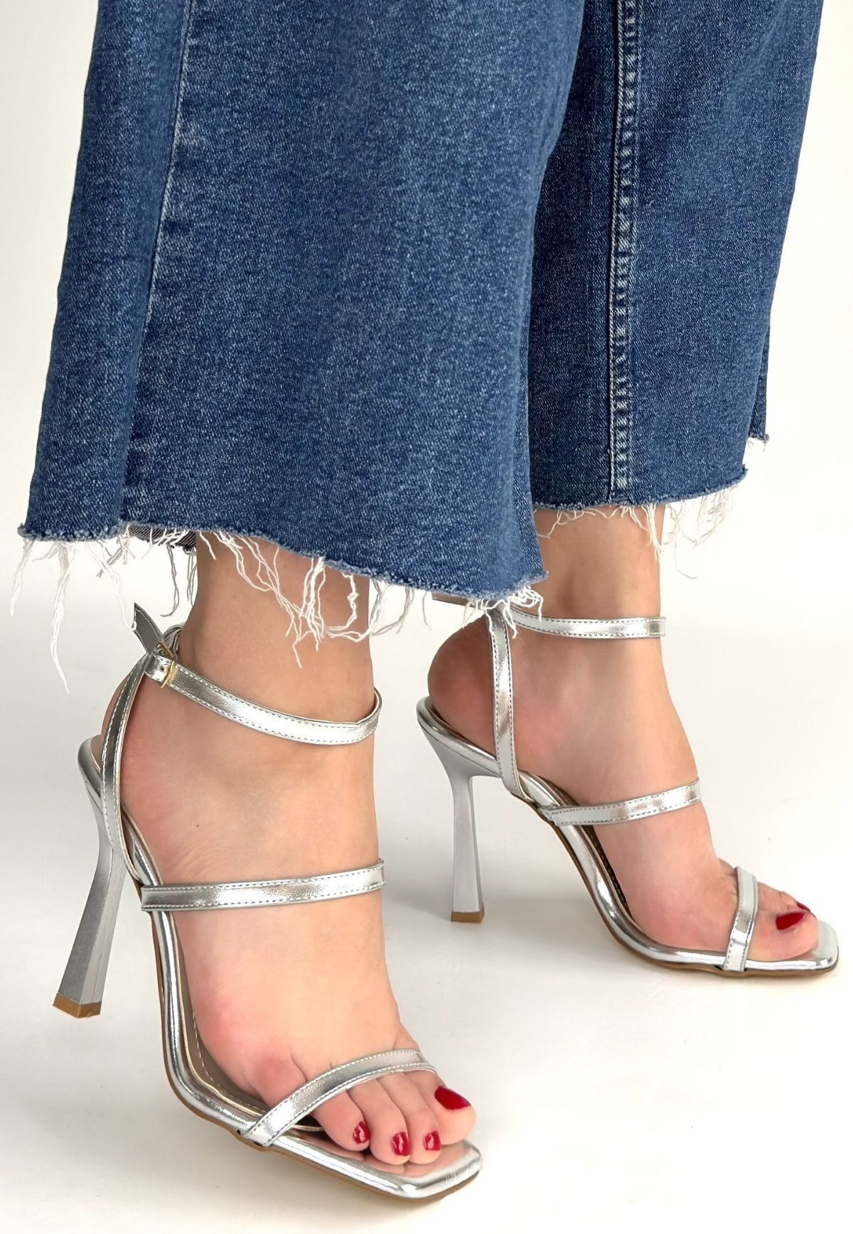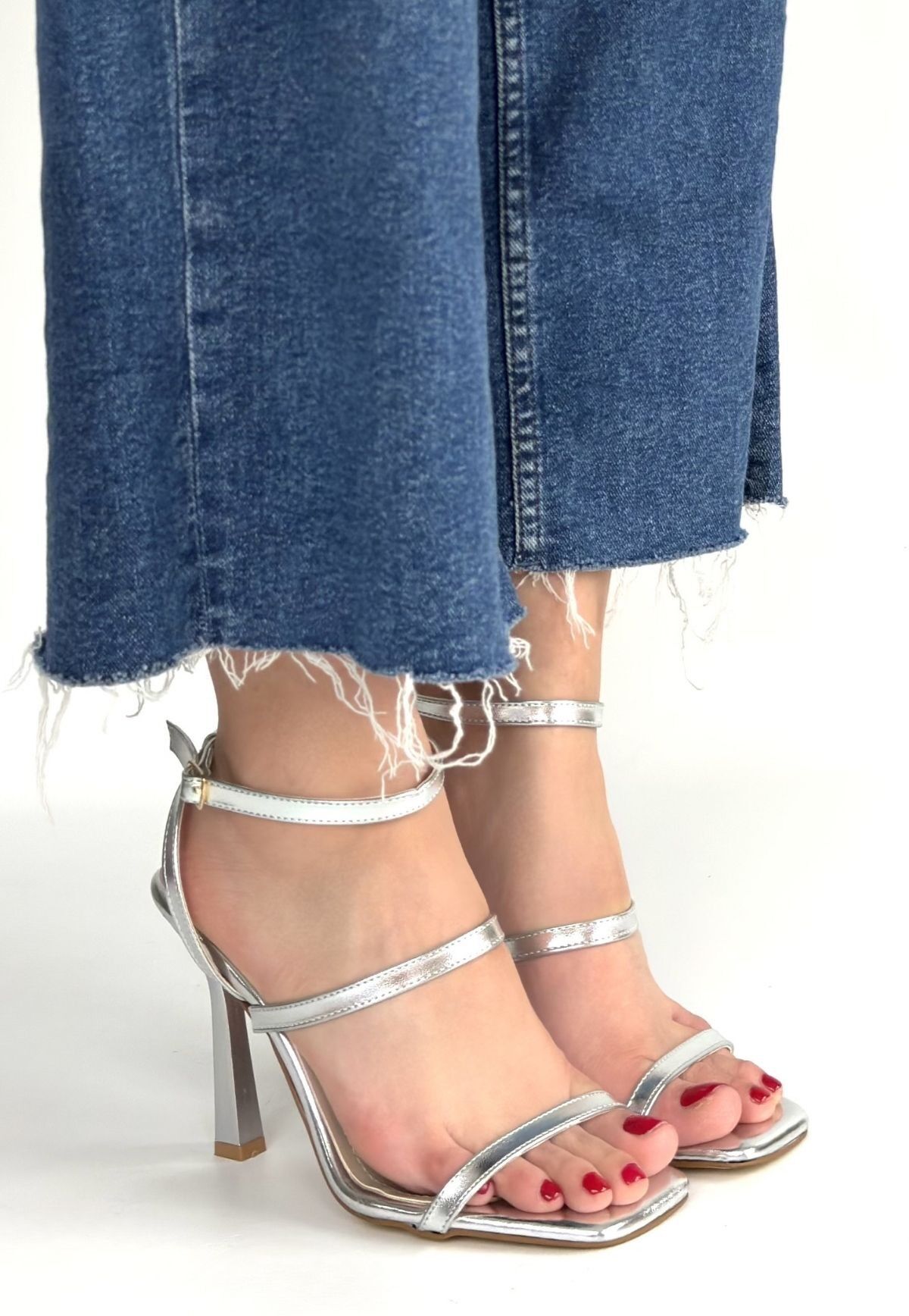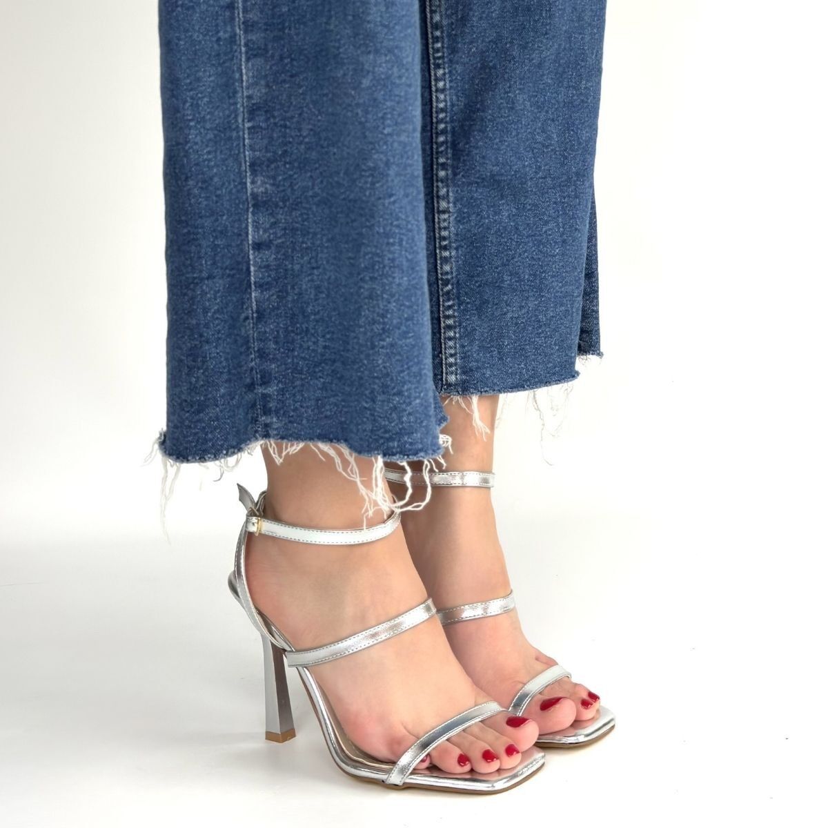 Umira Gümüş Rugan Topuklu Bilekten Kemerli Ayakkabı
