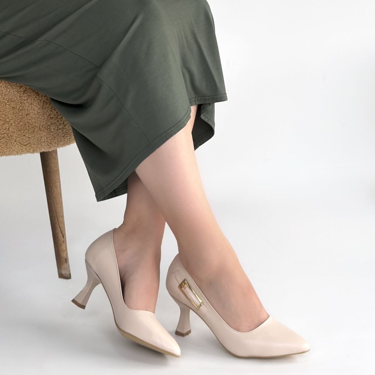 Yons Bej Cilt Topuklu Ayakkabı