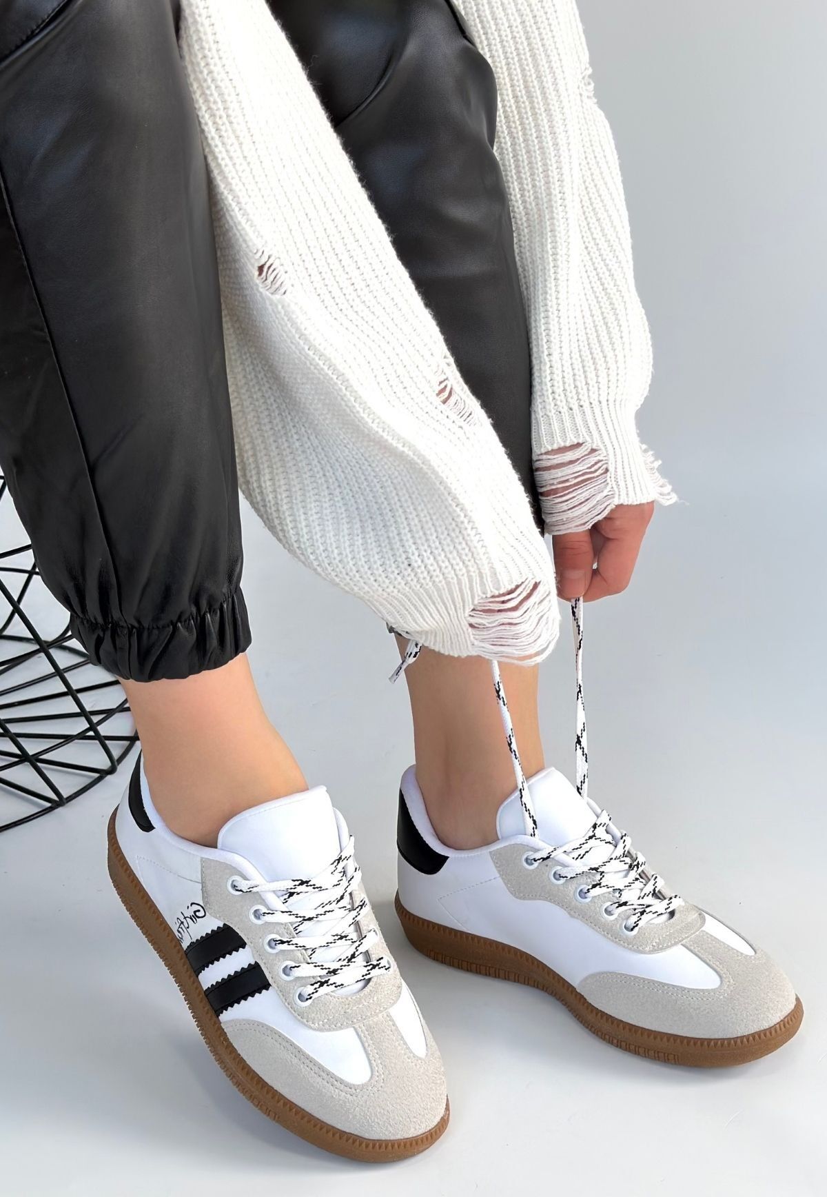 Zerti Beyaz Cilt Bağcıklı Spor Ayakkabı