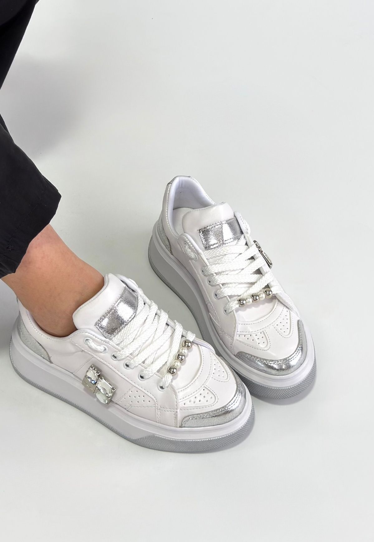 Ceans Beyaz Cilt Bağcıklı Spor Ayakkabı