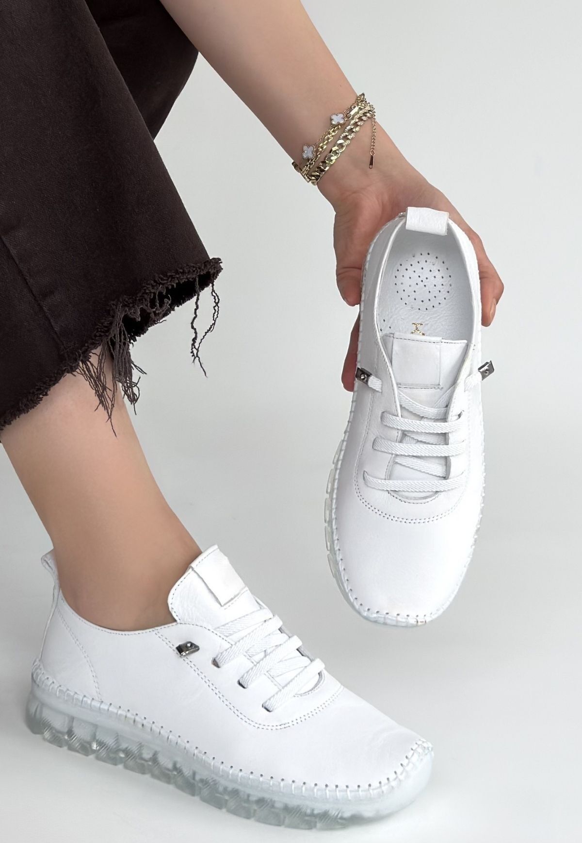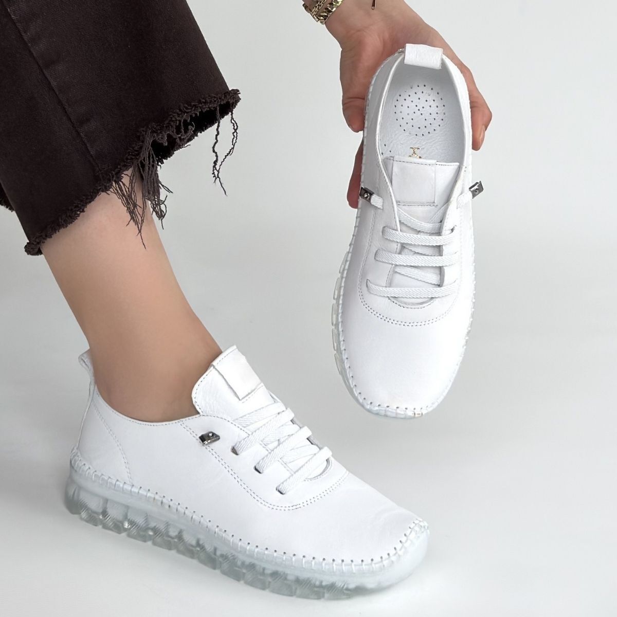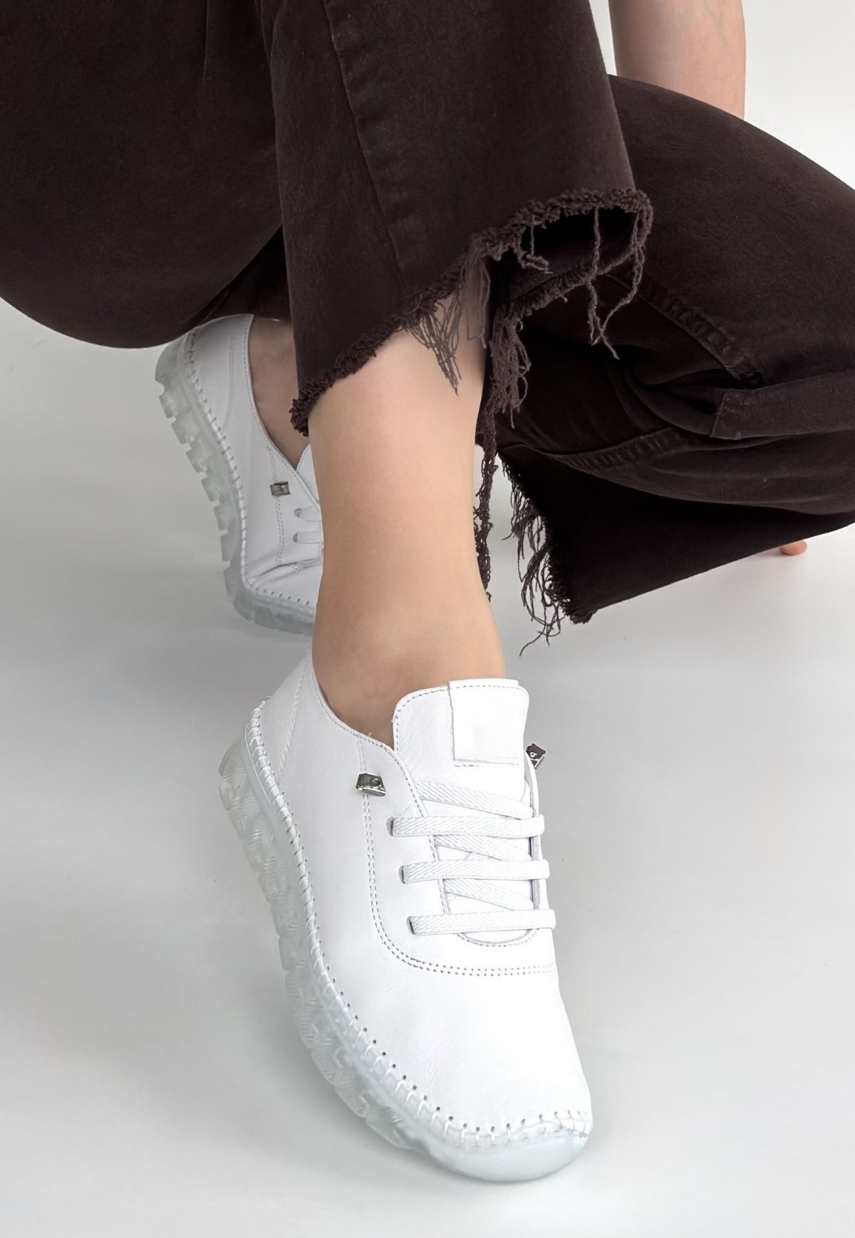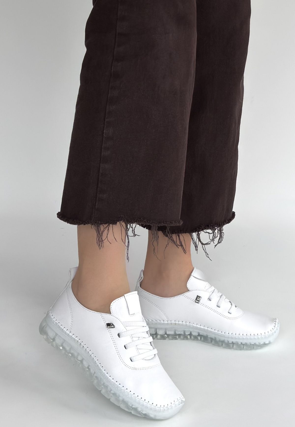 Jiten Beyaz Deri Bağcıklı Spor Ayakkabı