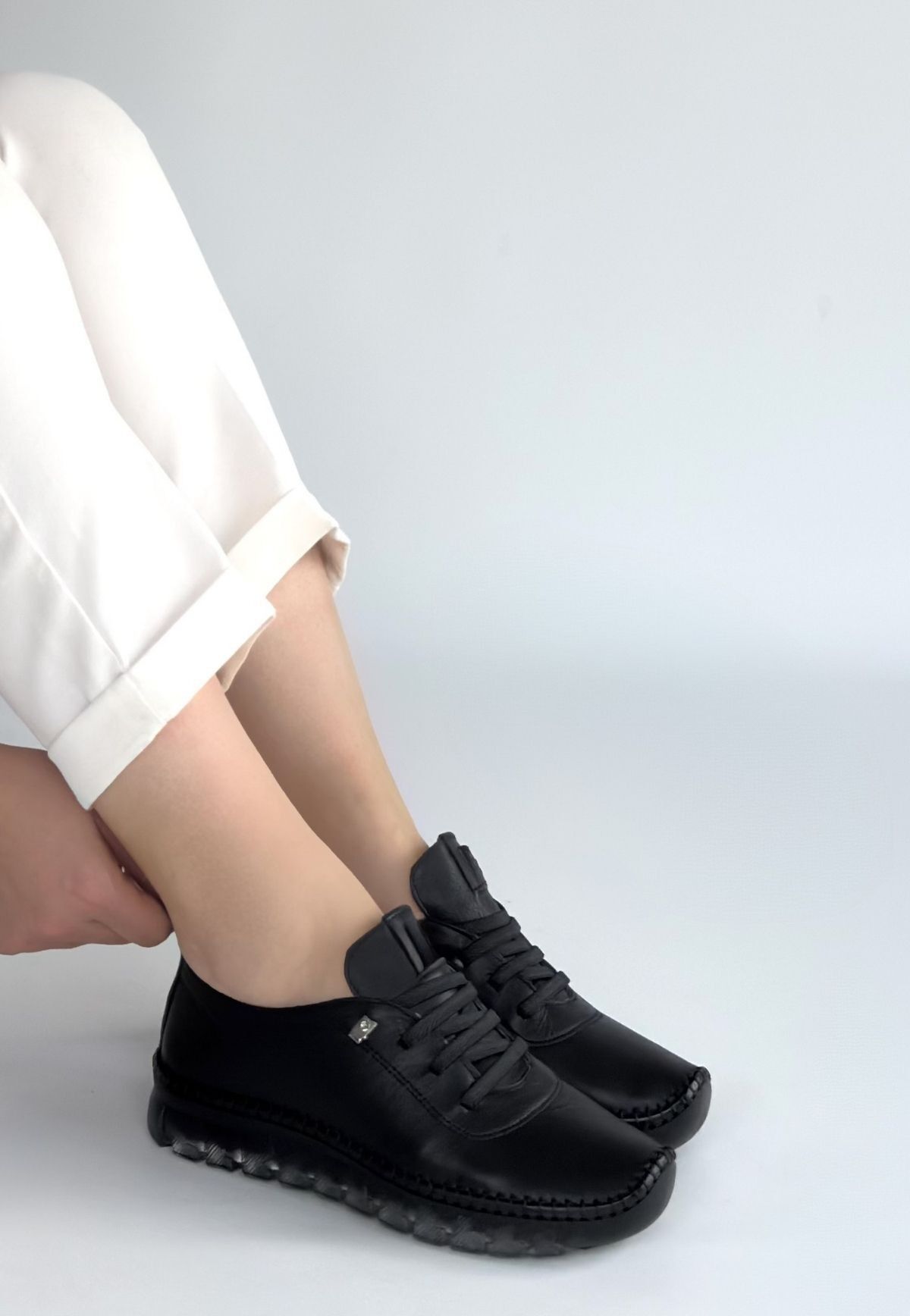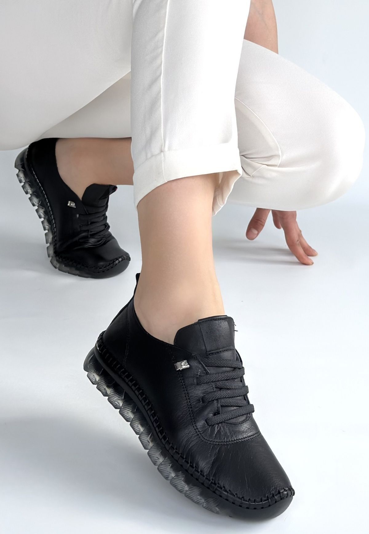 Jiten Siyah Deri Bağcıklı Spor Ayakkabı
