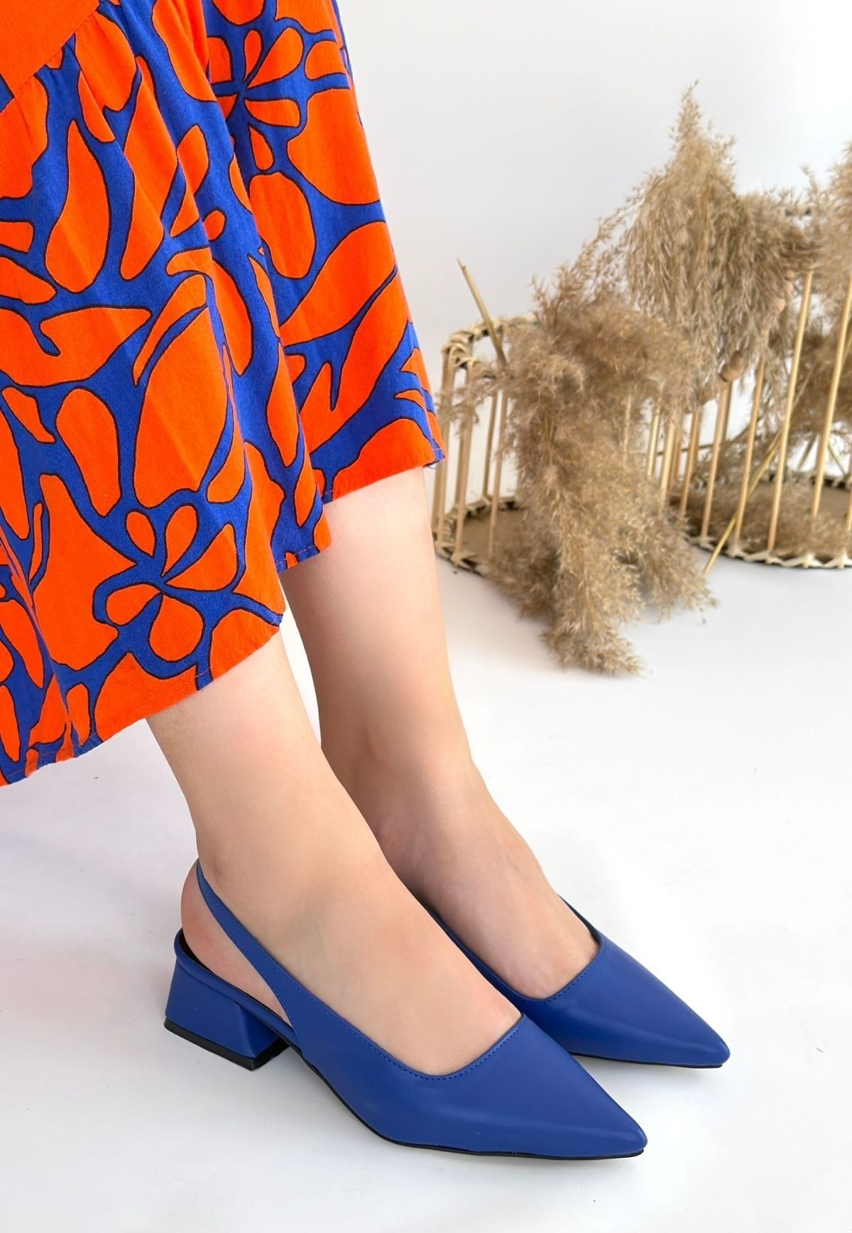 Renk: Mavi Detay: Topuklu Malzeme: Cilt Topuk Boyu: 3 Cm Taban Materyali: Jurdan Taban Kalıp: Standart Ayak Ölçülerine Göre Tam Kalıp.